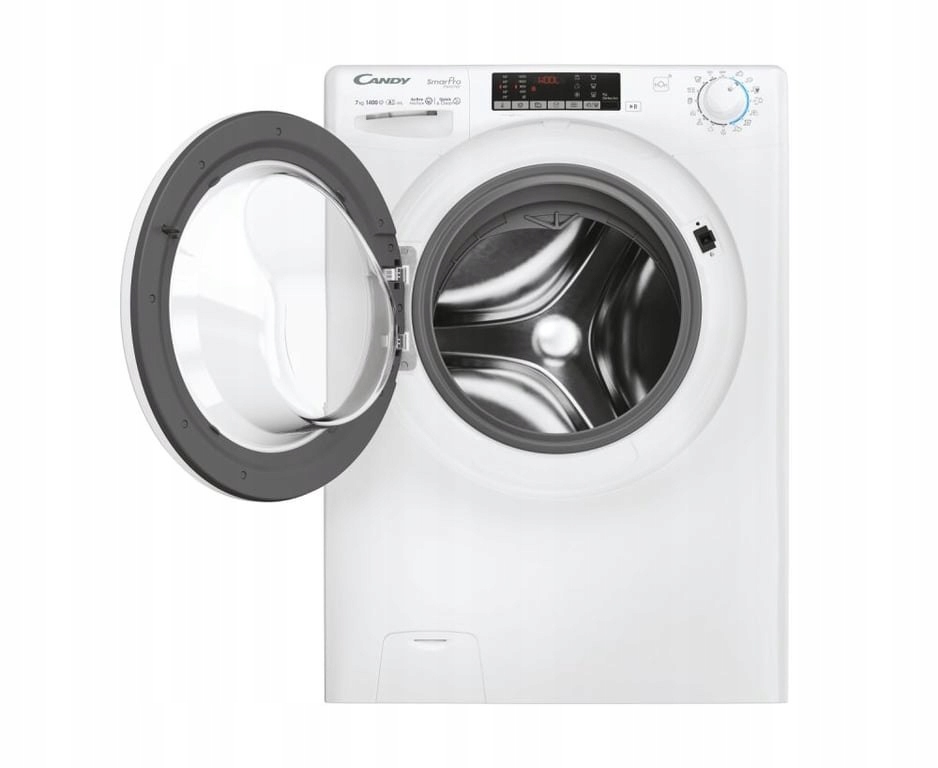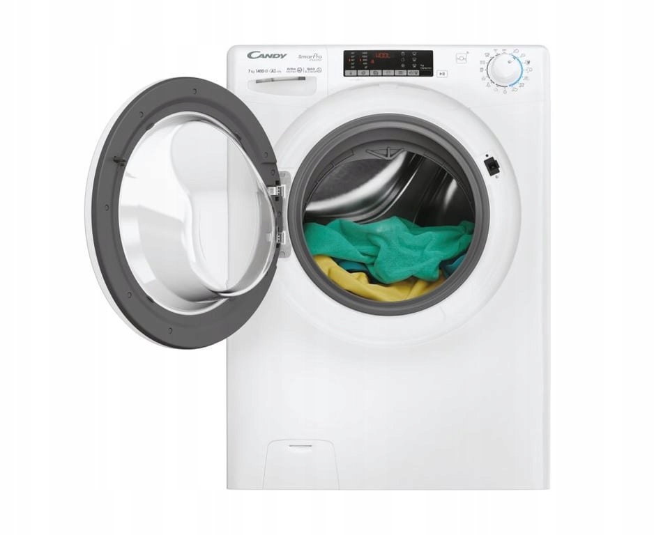 Candy Smart Pro Inverter CO 474TWM6/1-S. Typ ładowania: Od przodu. Pojemność znamionowa: 7 kg, Klasa wirowania (suszenia): B, Poziom hałasu (wirowanie): 77 dB, Maksymalna prędkość obrotu: 1400 RPM. Kolor produktu: Biały. Szerokość produktu: 600 mm, Głębokość produktu: 490 mm, Wysokość produktu: 850 mm. Klasa wydajności energetycznej: A