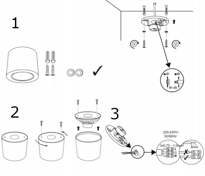 CAROLIN DLR GU10 downlight max 35W, IP20, okrągły, czarny, Orno, AD-OD-6146
