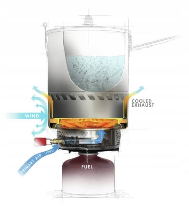 - Niezrównana ochrona przed wiatrem: Wymiennik ciepła całkowicie otacza promienną głowicę palnika, praktycznie eliminując efekty wiatru, aby utrzymać wyjątkowy czas wrzenia i zaoszczędzić paliwo.