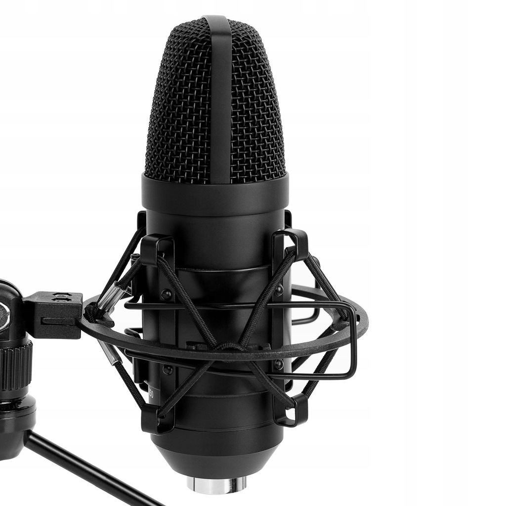 - punkt znaku wypunktowania: Mikrofon pojemnościowy, Do podcastów, streamów na żywo, gier i muzyki, W zestawie pająk mikrofonowy, stojak stołowy, 2,5 m kabel XLR i ochrona przed wiatrem, Element: kondensator, charakterystyka kierunkowa: nerka, Kolor: czarny matowy