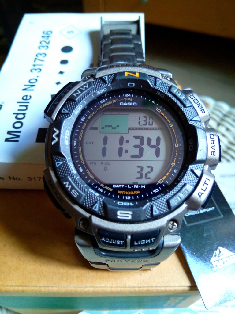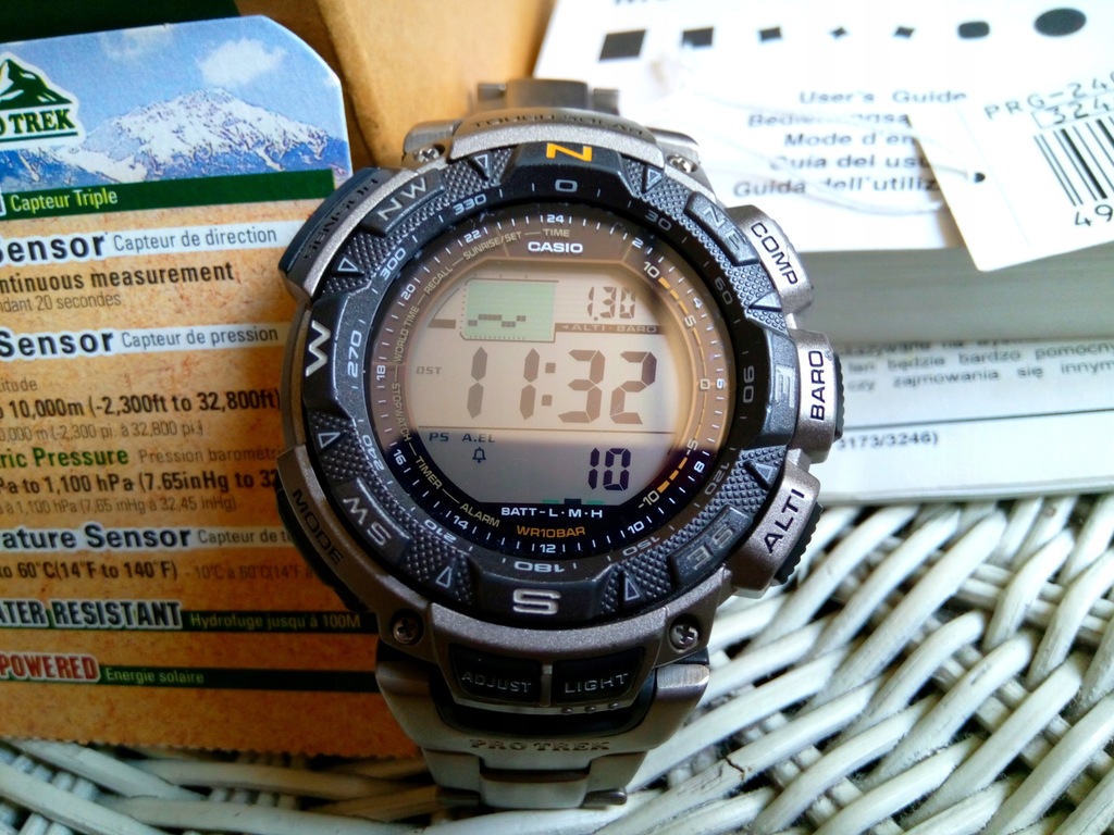 Sprzedam zegarek męski Casio Protrek model 240T-7. Zegarek kupiony w polskim salonie. Do zegarka jest instrukcja w j.polskim oraz orginalne opakowanie. Zegarek uzyty okazjonalnie zaledwie pare razy. Stan oceniam na b.dobry.