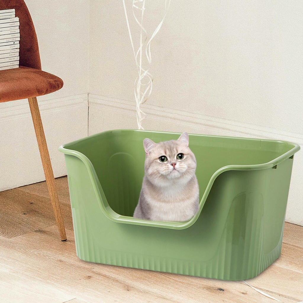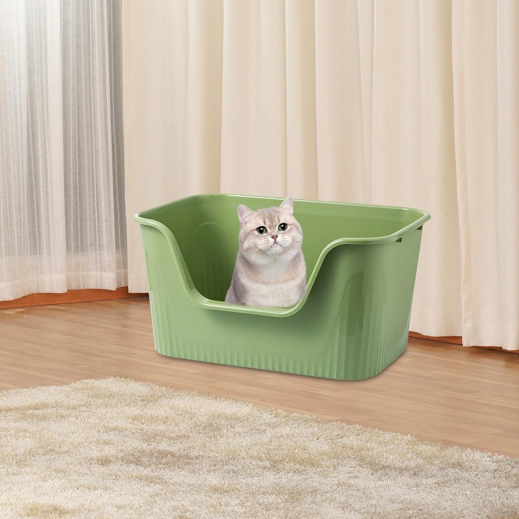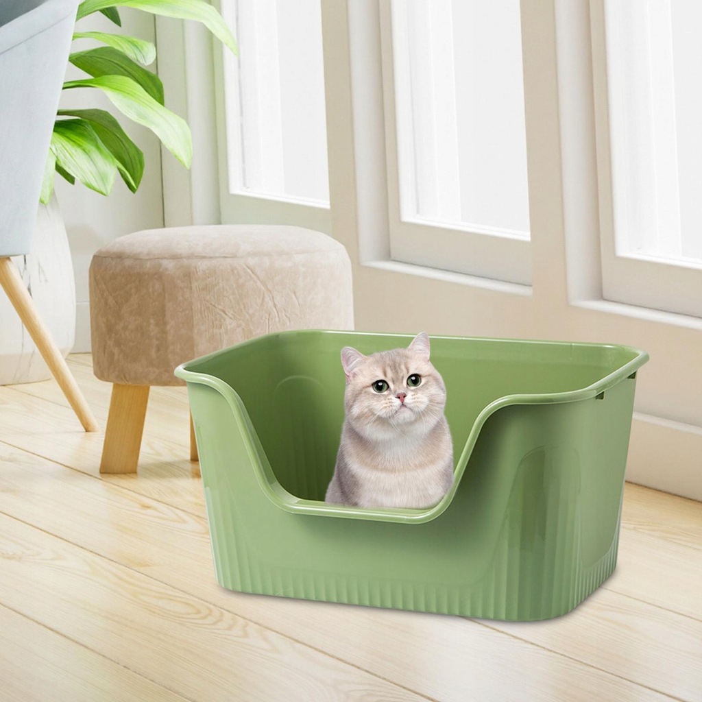 Cat Litter Box Portable Deep Loo Large Space Bedpan Open Top Pet Litter Tray Green