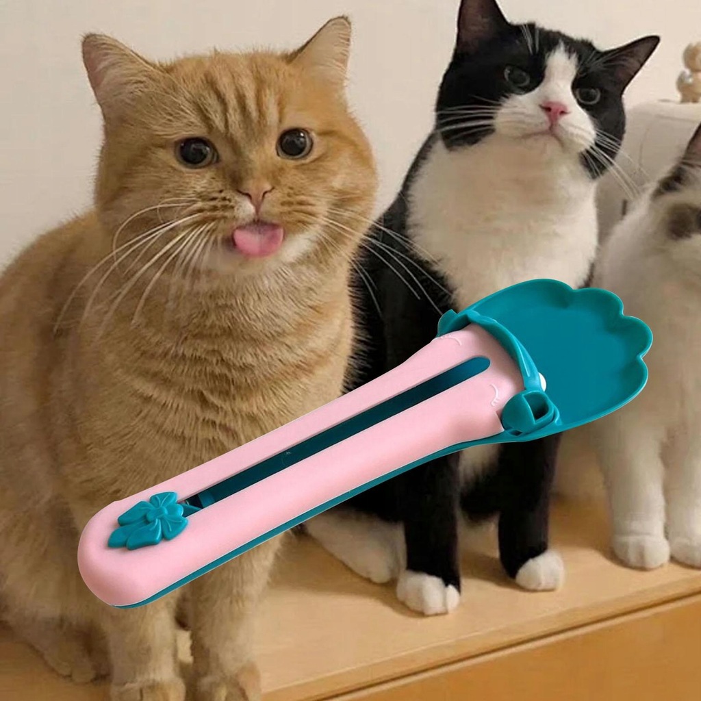 Pet Snack Feeding Lightweight Multifunctional Cat Wet Treats Dispenser Spoon pink and blue