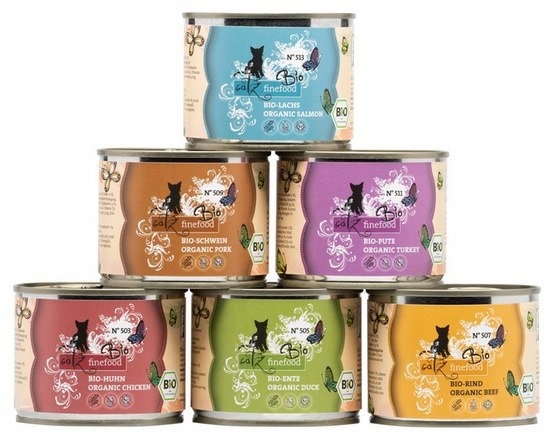 Zrównoważona receptura z gatunku Catz Finefood Bio jest idealnie dopasowana do potrzeb kotów. Wszystkie składniki są certyfikowane ekologicznie i wolne od GMO. Koty uwielbiają intensywny smak świeżo przetworzonego mięsa ekologicznego i ekologicznych podrobów. Nawet koty, które są wrażliwe na składniki odżywcze lub cierpią na alergie pokarmowe, mogą cieszyć się karmą Catz FineFood Bio, ponieważ każda odmiana zawiera tylko jedno zwierzęce źródło białka, a przejrzysta deklaracja ułatwia wybór odpowiedniego smaku dla Twojego zwierzęcia.