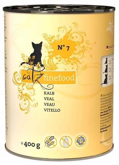 Specjał dla kotów – wartościowa karma dla naszych pupili. Catz finefood N°7 zawiera dużo delikatnej cielęciny oraz zdrowe dodatki, jak ananas i algi morskie. Bez konserwantów, barwników i wzmacniaczy smaku. Nie zawiera GMO. Mmmmiau!