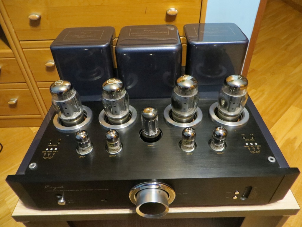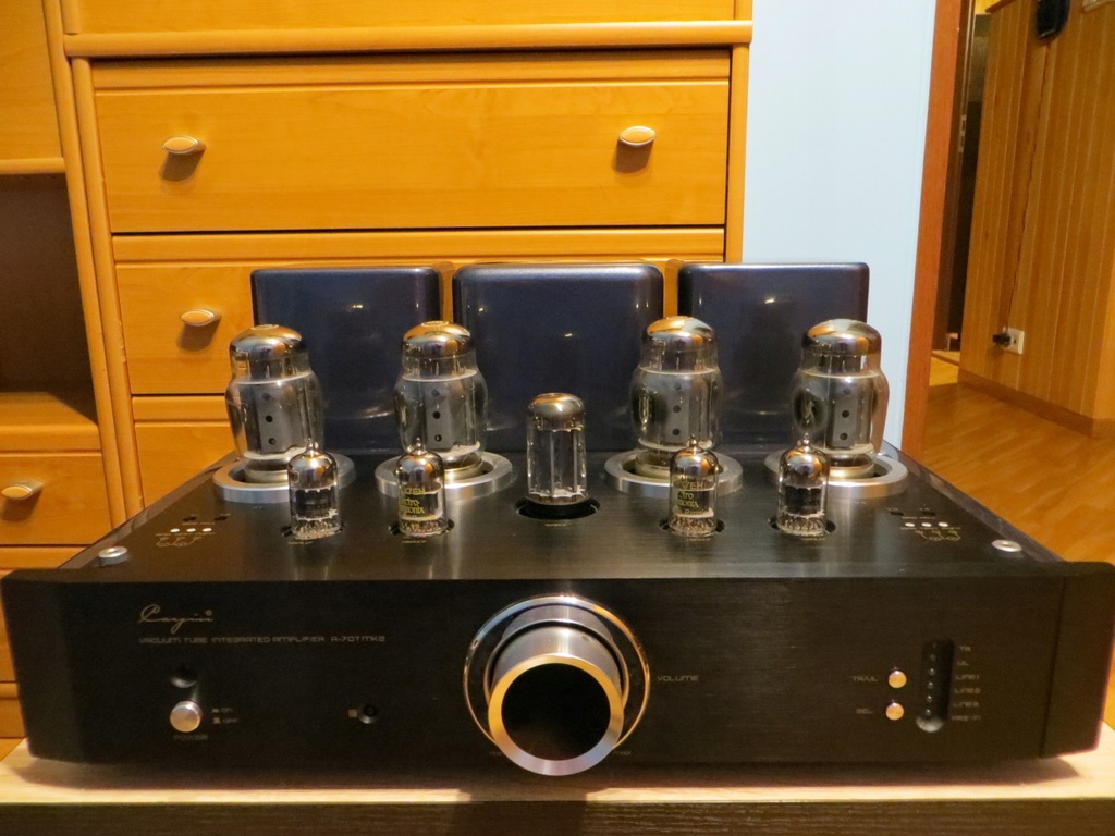 Sprzedam wzmacniacz lampowy Cayin A70T MK2, który kupiłem bezpośrednio u polskiego dystrybutora Cayina w Tychach w dniu 29.12.2016r czyli równo dwa lata temu. Wzmacniacz jest w idealnym, fabrycznym, gabinetowym stanie, nie posiada żadnych śladów użytkowania (rys, zadrapań, otarć itp.), nigdy nie był naprawiany, rozkręcany, przestawiany, przewożony itp. Posiadam wszystko co było przy zakupie – oryginalne opakowanie, pilot (jeszcze w fabrycznej folii), instrukcję obsługi, kartę gwarancyjną, a nawet białe rękawiczki, które były w komplecie do zmiany lamp (nigdy nie używane), lampy we wzmacniaczu są fabryczne. Tak naprawdę grał w moim głównym systemie tylko przez pierwszy rok, później kupiłem inny wzmacniacz…., a Cayin trafił do sypialni, gdzie słuchany jest sporadycznie i szkoda, żeby tak dobry wzmacniacz więcej stał niż grał… i tylko się kurzył...