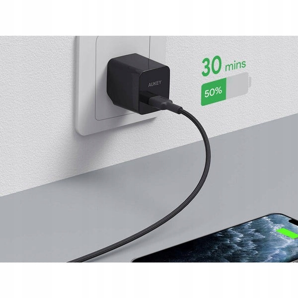 UWAGA! Jeżeli masz iPhone 8 lub nowszy dokup ładowarkę lub power bank AUKEY z portem USB-C PD w celu szybkiego ładowania swojego ulubionego urządzenia Apple.