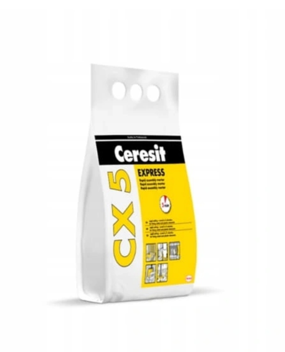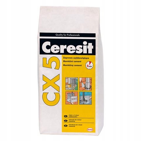 Zaprawa szybkowiążąca Ceresit CX 5 służy do osadzania elementów metalowych i plastikowych w betonie, murze lub w tynku cementowym. Szybko twardnieje - czas wiązania wynosi 5 minut dzięki czemu przyśpieszy dalsze prace wykończeniowe. Jest bardzo wytrzymały i mrozoodporny dlatego można go stosować zarówno wewnątrz jak i na zewnątrz. Dodatkowo jest wodoszczelny, dzięki czemu można mocować nim również wiszącą ceramikę łazienkową taką jak bidety, umywalki, sedesy, a wykonana podlewka pod lampę ogrodową nie przepuści wody do instalacji.