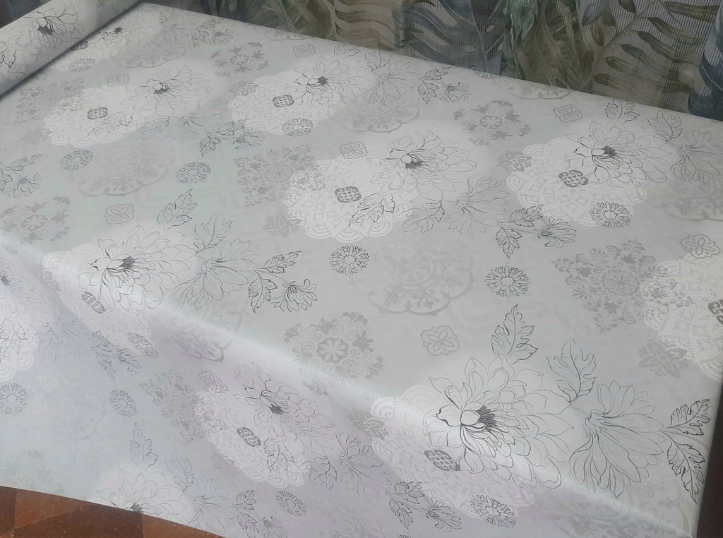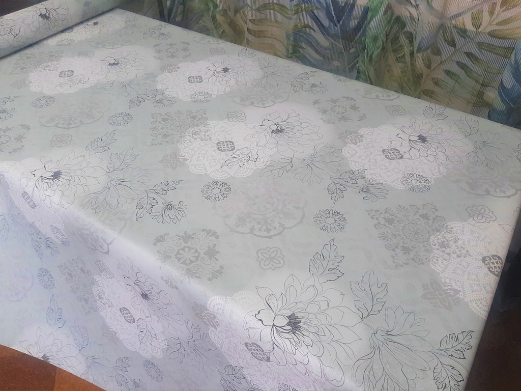 Kolor: Tło jasny popiel, delikatnie muśnięte odcieniem zieleni ( miętą ) - wzór w kolorach bieli srebrnego oraz czerni