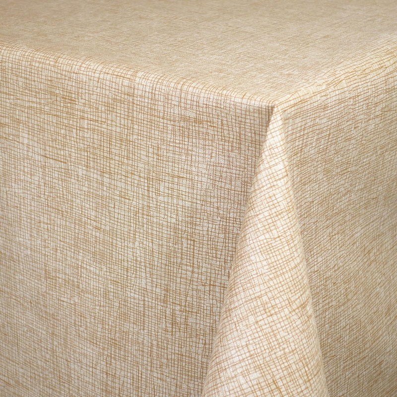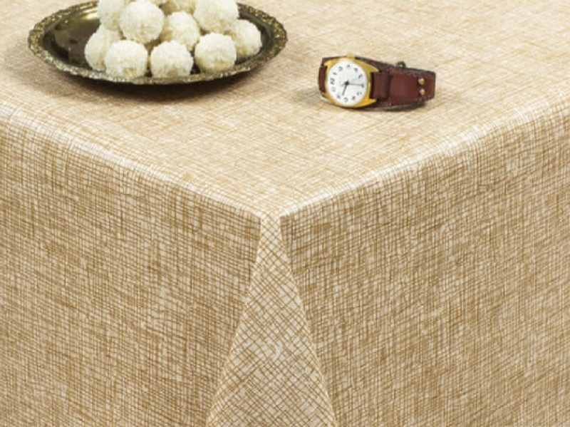Taki wzór ceratki na pewno się zbyt szybko nie znudzi. Przypomina naturalny len, przetykany złotą nitką. Dobrze będzie wyglądać w pomieszczeniach urządzonych w stylu klasycznym, jak i nowoczesnym. Docenili go również właściciele restauracji.