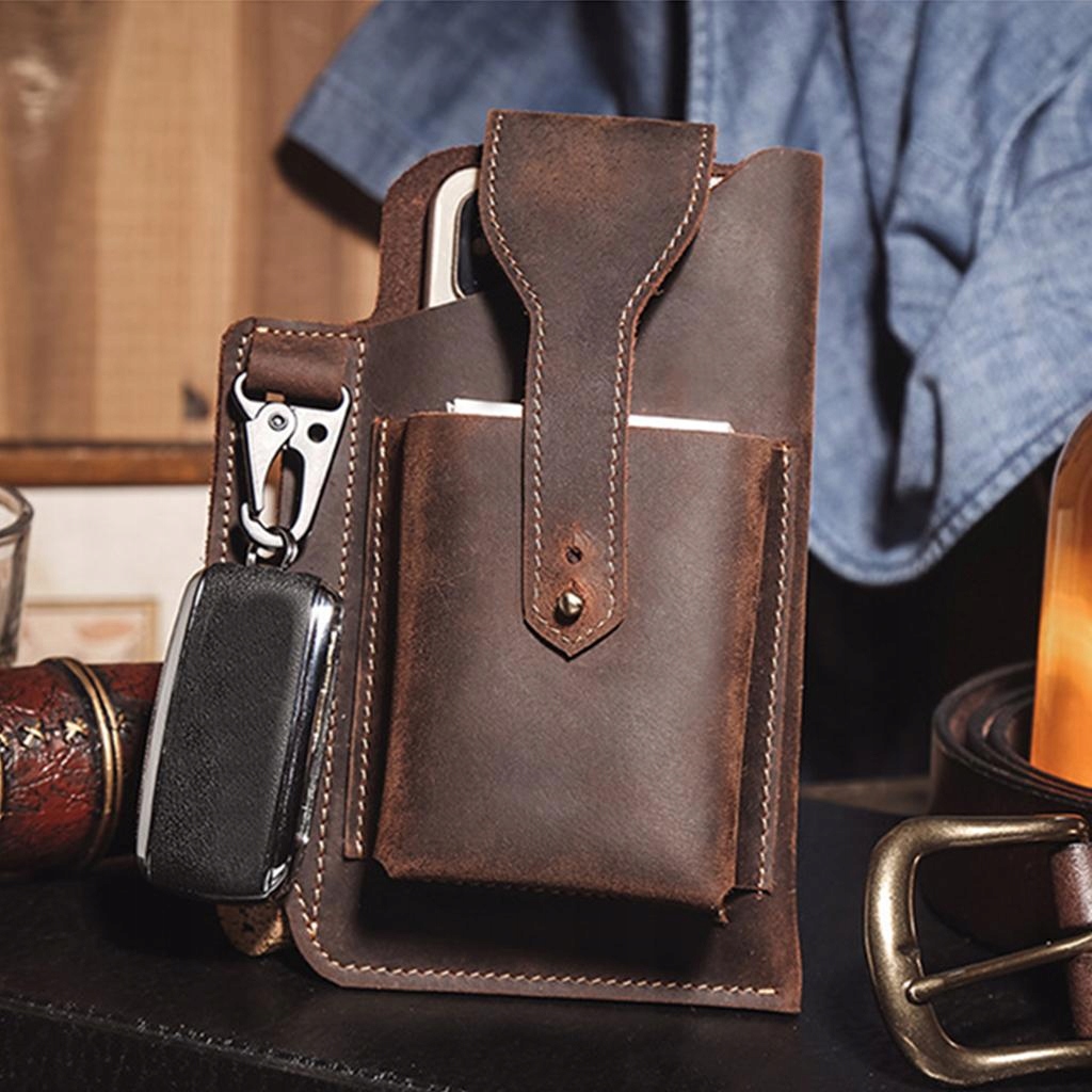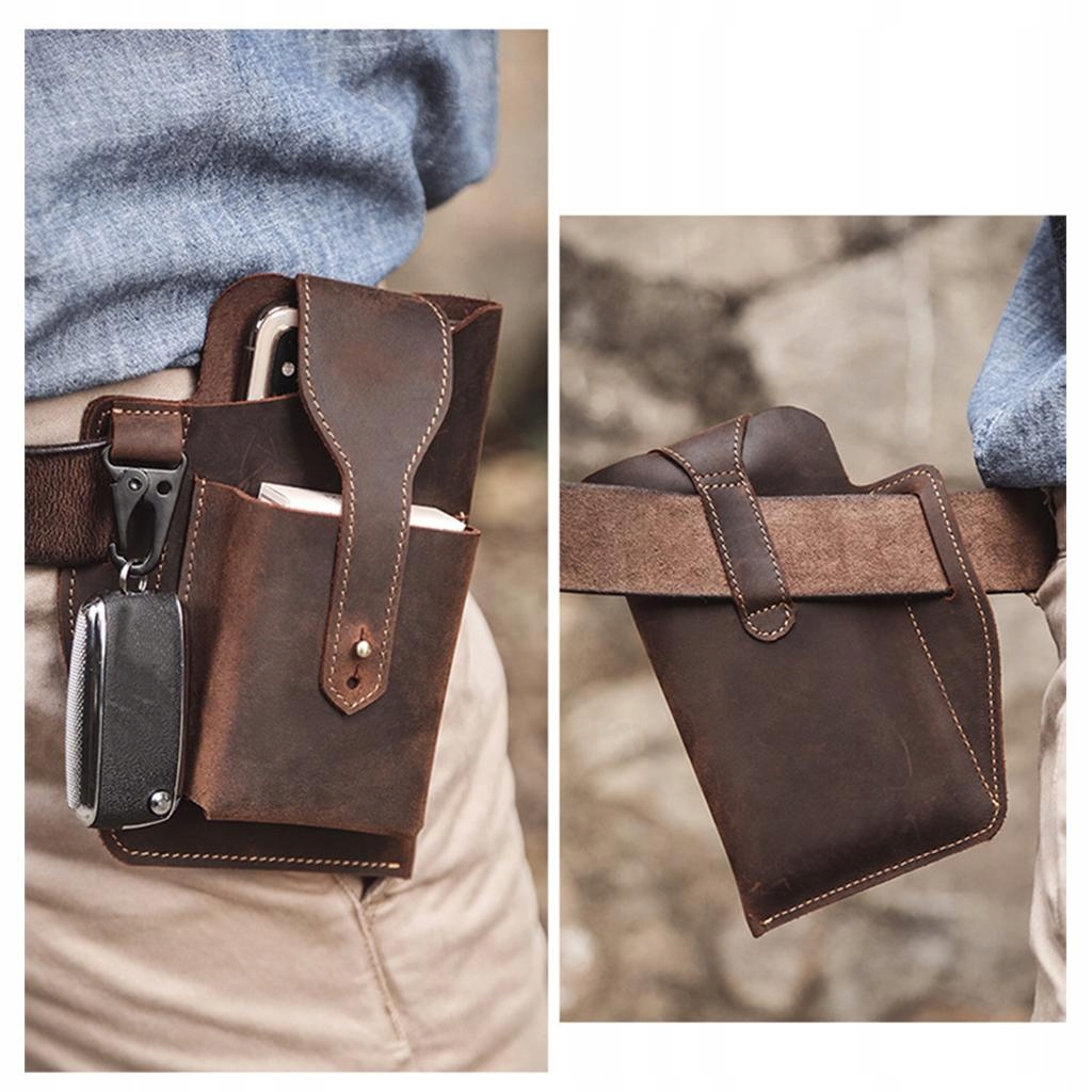 Męski skórzany uchwyt na pasek na telefon Torba na talię Torebka na kawę
