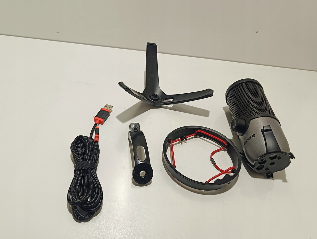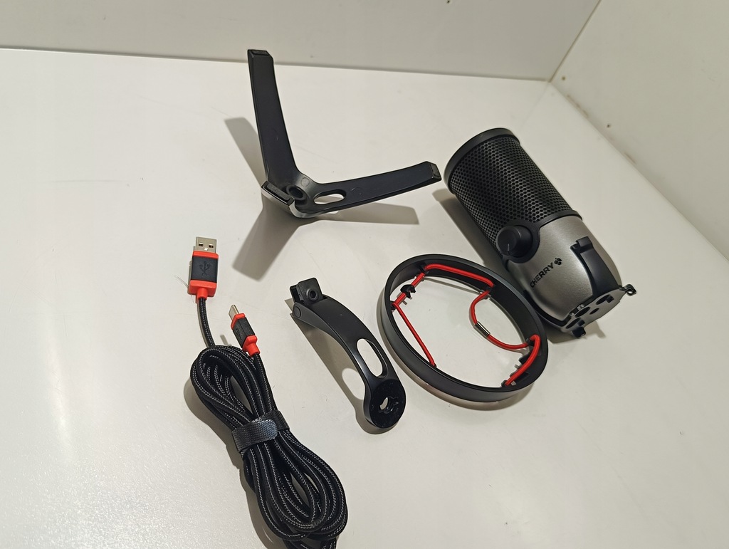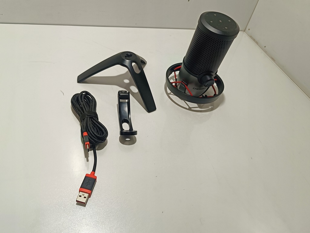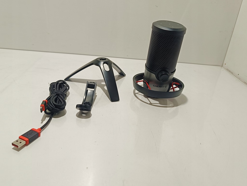 CHERRY UM 6.0 ADVANCED Czarny, Srebrny Mikrofon stołowy USB PC LAPTOP (PO ZWROCIE KONSUMENCKIM, SPRZĘT W 100%OKI NOWY NIE UŻYWANY JEDNAKŻE KTOŚ UŁAMAŁ JEDEN UCHWYCIK DO GUMY I NIE ZWRÓCIŁ ŚRUBY DO SKRĘCENIA GWINT STANDARDOWY , ZESTAW JAK NA REAL FOTO NIC INNEGO )