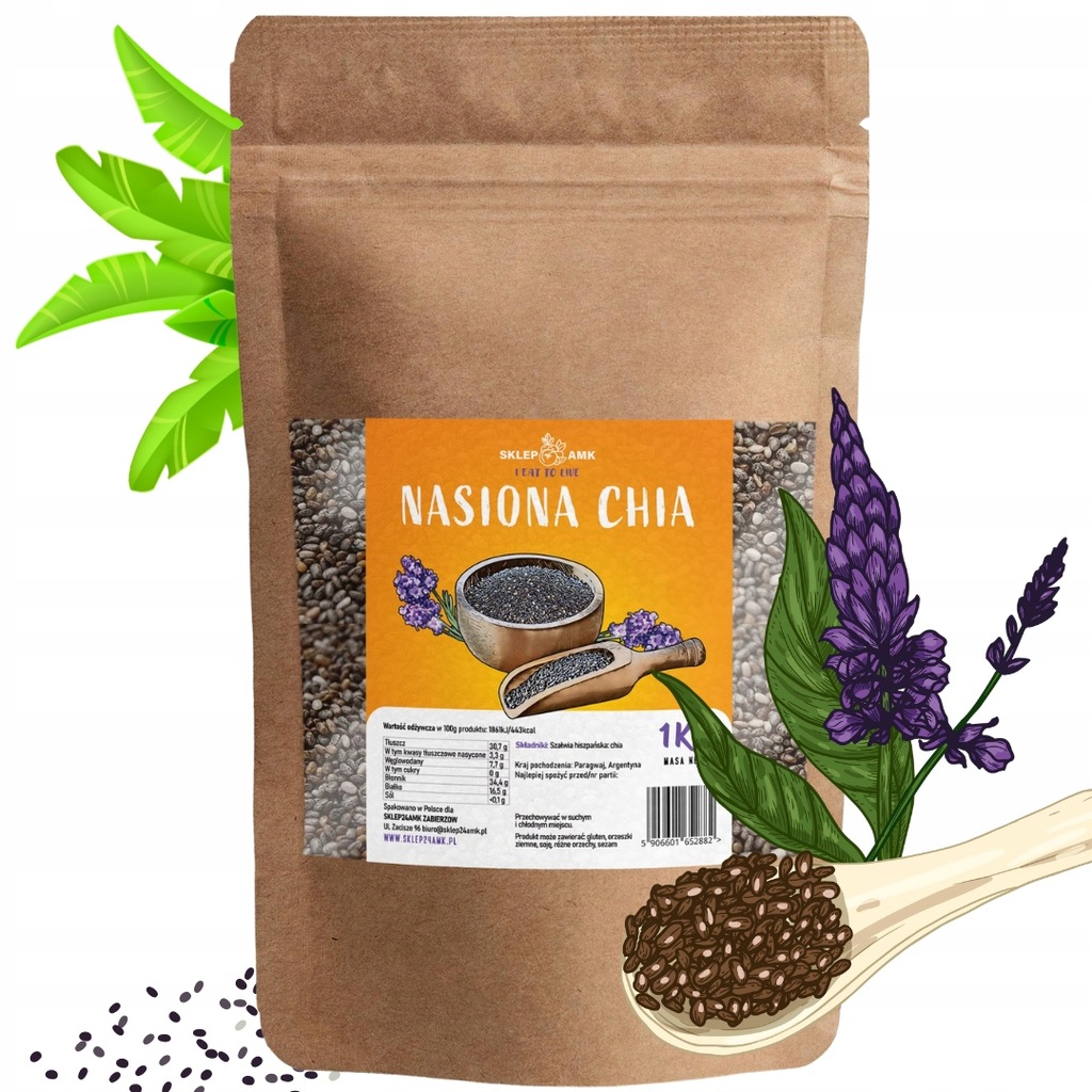 Chia nasiona szałwia hiszpańska 1kg wysoka jakość świeża naturalna 1000g