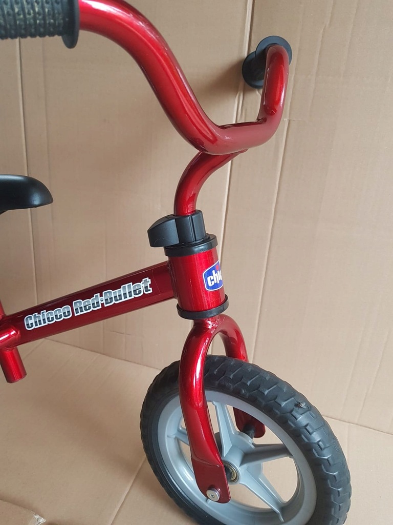 Chicco Rower Red Bullet to pierwszy rowerek dla dziecka. Pomaga mu opanować umiejętność łapania równowagi podczas jazdy na dwóch kółkach po to, aby potem ułatwić jazdę na tradycyjnym rowerze z pedałami. Zrobiony jest z bardzo lekkiego metalu. Kierownica i siedzenie mają regulowaną wysokość, aby dostosować rowerek do wzrostu dziecka. Rowerek jest bardzo lekki - jego waga to jedyne 2,7 kg.