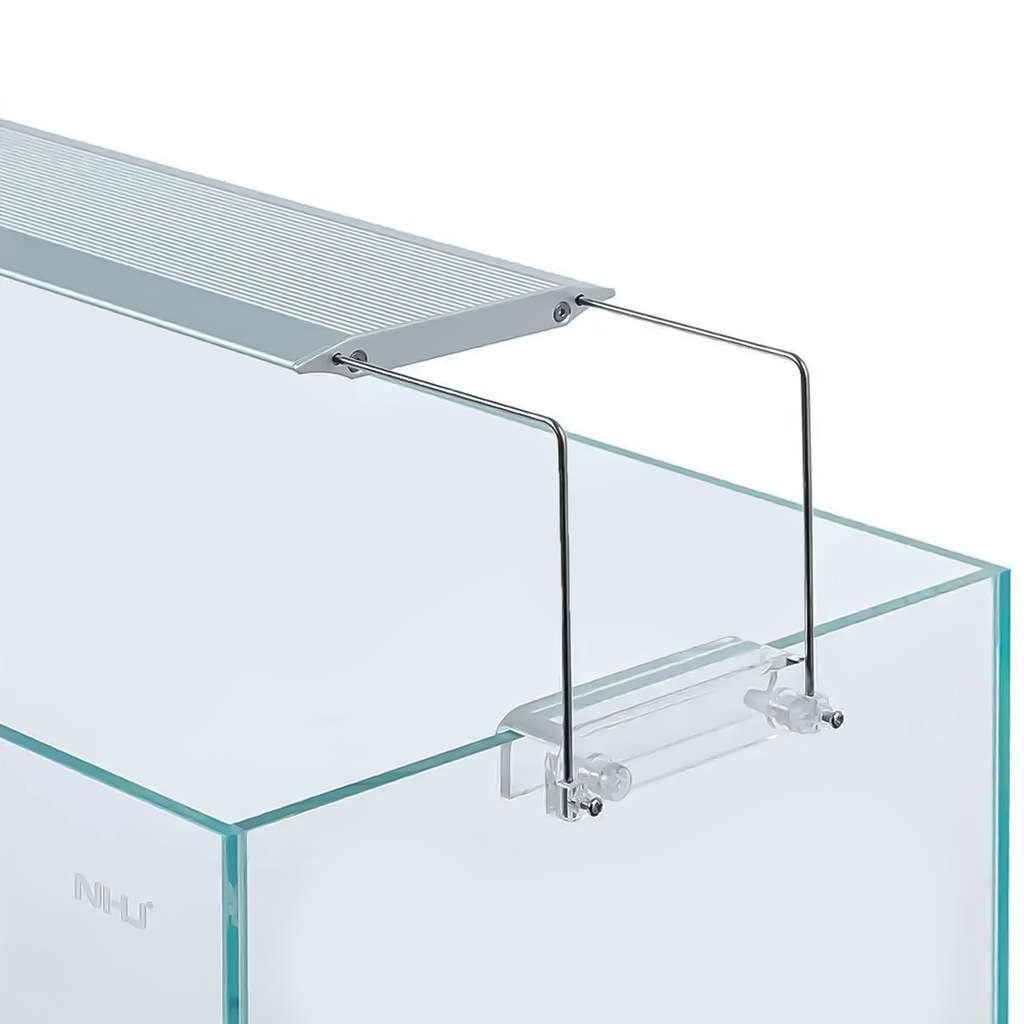 Lampę stawiamy na krawędziach akwarium. Nóżki umożliwiają zainstalowanie lampy na akwarium o szerokości 120 - 140cm. Uchwyty na szkło również są uniwersalne i pasują do grubości szkła od 4mm do 8mm.