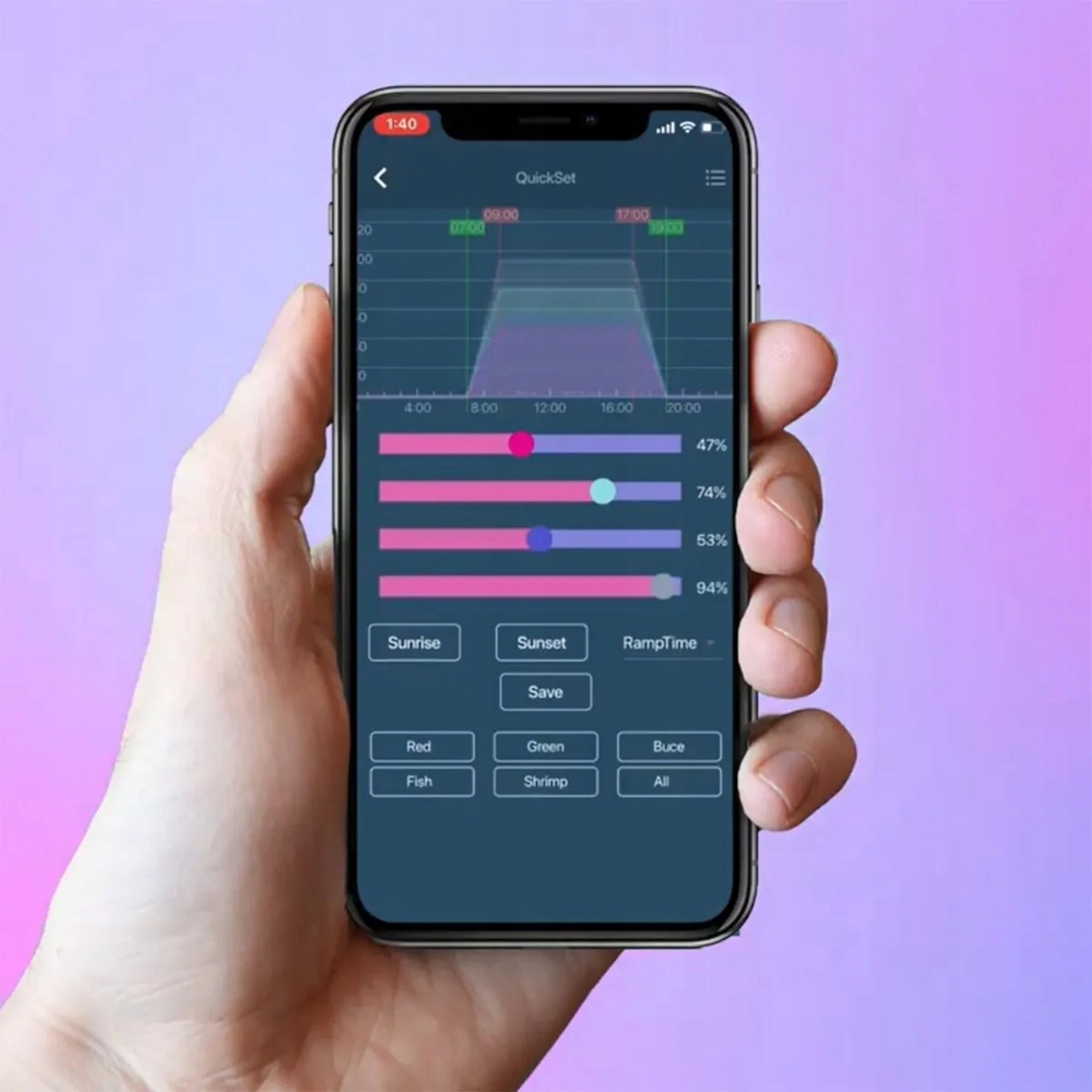Oświetleniem można sterować wyłącznie poprzez aplikację "My Chihiros" zainstalowanej na smartfonie bądź tablecie z systemem Android lub IOS. Aplikacja umożliwia przypisanie odpowiedniego natężenia światła dla poszczególnych godzin w ciągu dnia oraz ustawienia opcji świtu i zmierzchu.