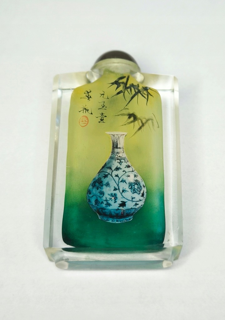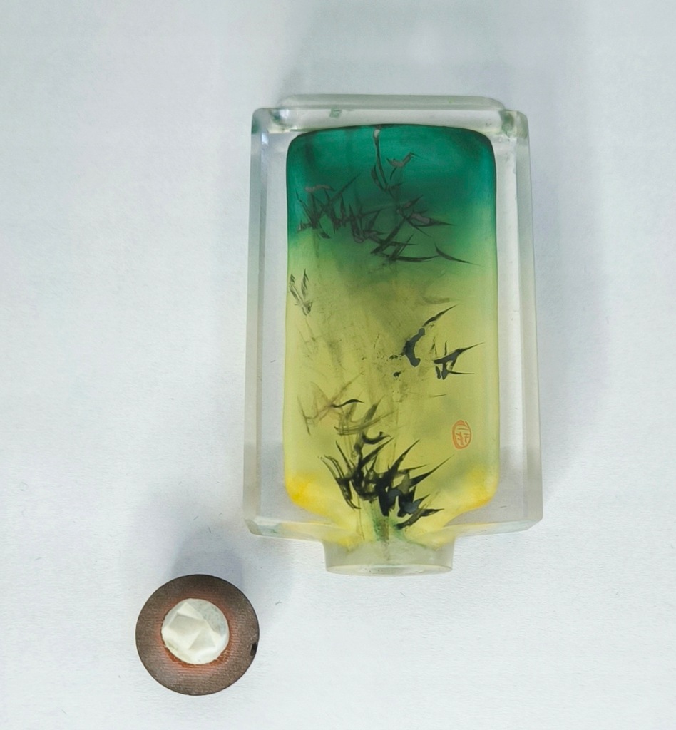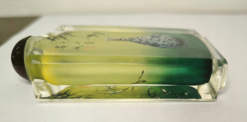 Chińska tabakiera lub pojemnik na opium wykonany ze szlifowanego szkła lub kryształu. Pięknie malowany.