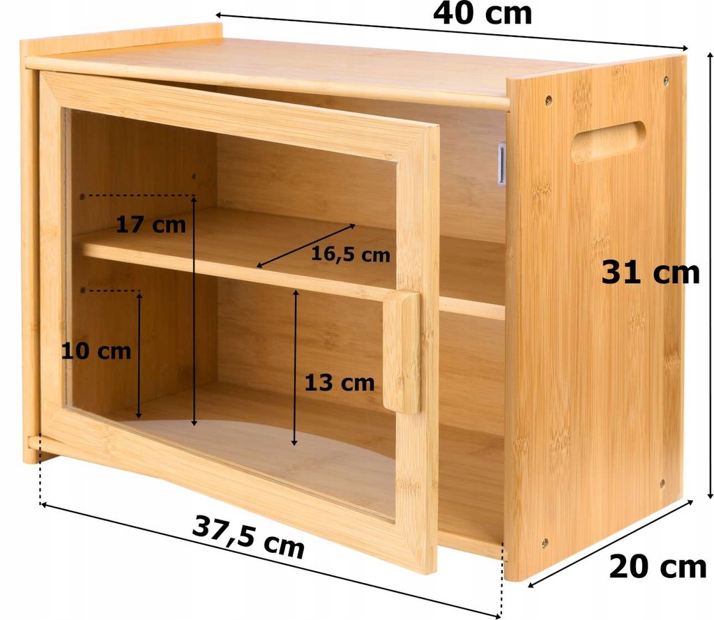 Pierre to dwupoziomowy chlebak bambusowy wykonany ze 100% drewna bambusowego. Przezroczyste okno z pleksi pozwala na szybką identyfikację pieczywa. Chlebak ma wyżłobione uchwyty do przenoszenia. Wysokość wewnętrznej półki można regulować w zależności od potrzeb. Półkę można wyjmować a po wyjęciu używać jako deski do krojenia. Do produkcji chlebaka wykorzystano materiały najwyższej jakości, zachowując przy tym dbałość o każdy detal. Chlebak jest estetycznie wykończony, ma gładkie i zaokrąglone krawędzie.
