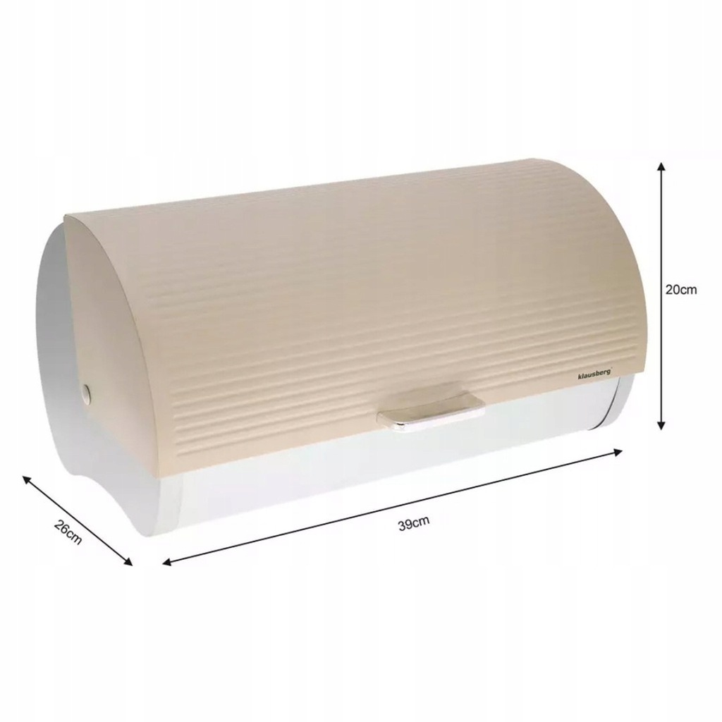 Chlebak ze stali węglowej w kolorze srebrnym. Pokrywa pokryta emalią w kolorze beżowym