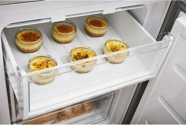 StopFrostRozmrażanie w 1 minutę.System StopFrost sprawia, że w lodówce nie zbiera się lód. Aby rozmrozić zamrażalnik, wystarczy wyjąć katalizator i umieścić go na 1 minutę pod bieżącą wodą.
