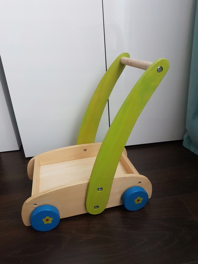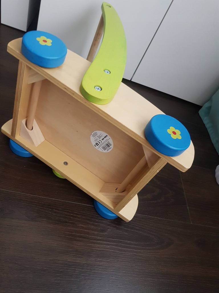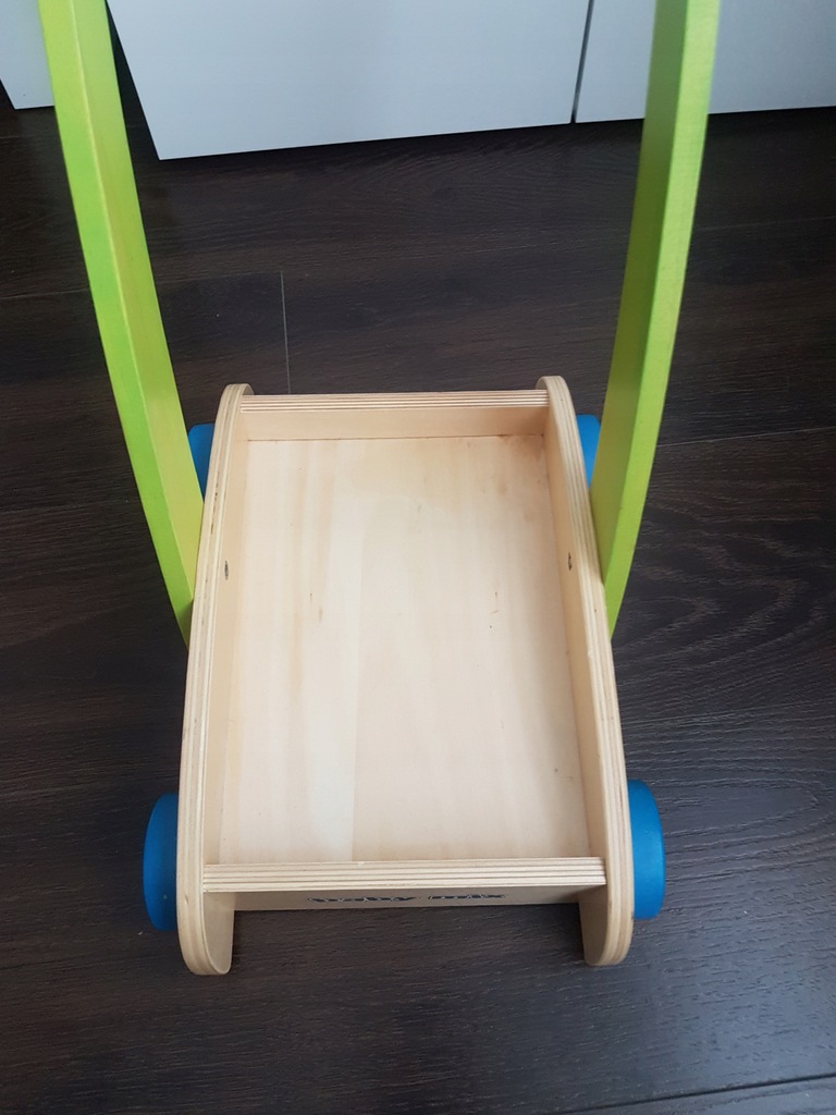 Witam na sprzedaż posiadam drewniany odpychacz,chodzik ,wózek do klocków czy zabawek..stan ogólny bardzo dobry,małe ślady użytkowania. Wymiary: 35cm x 26cm