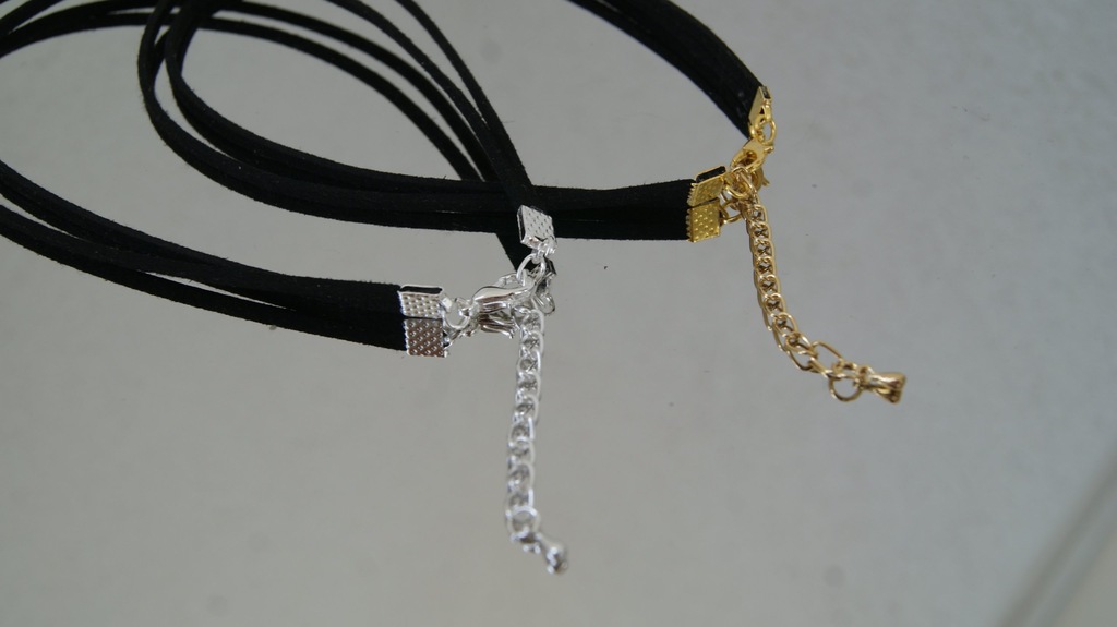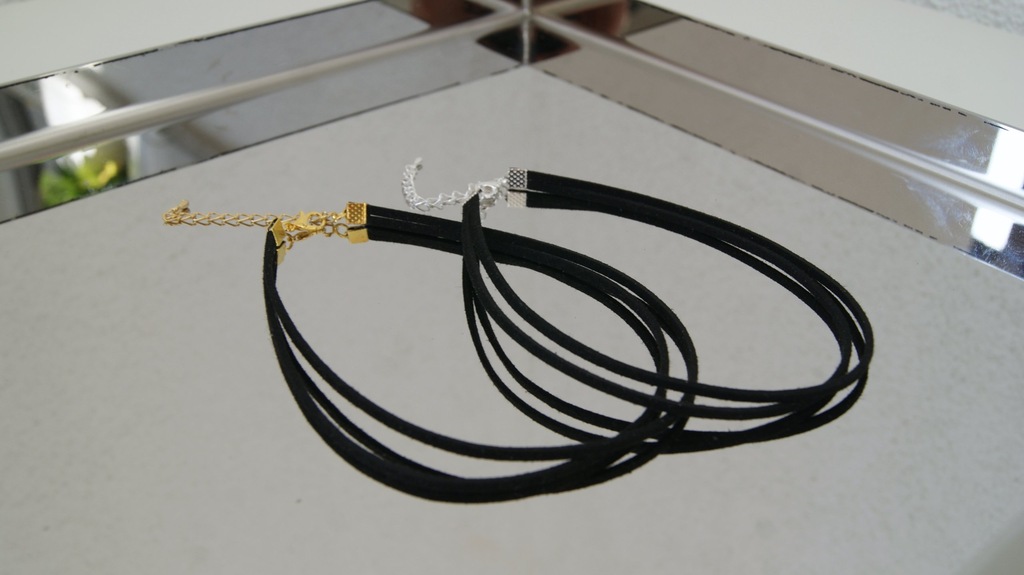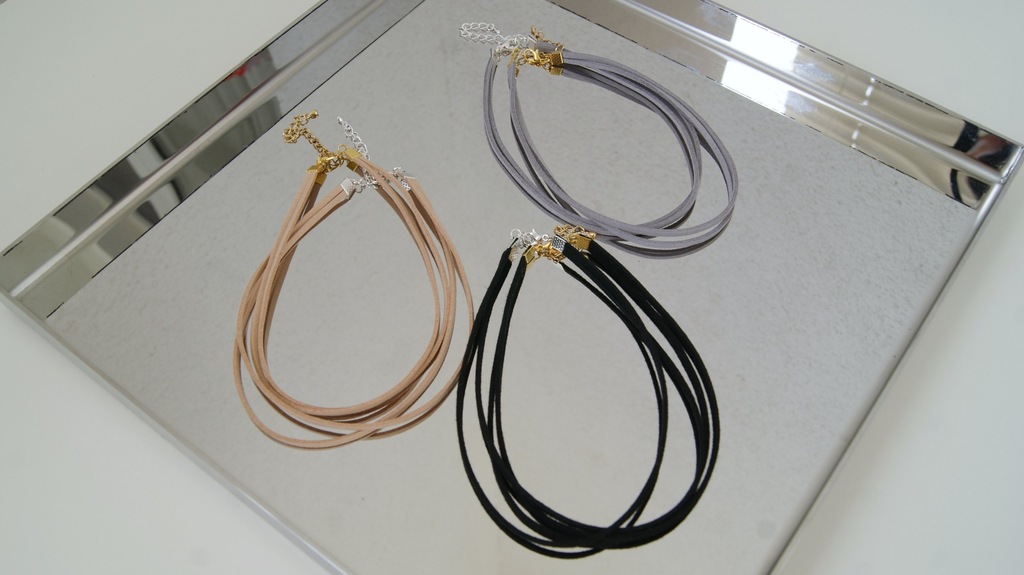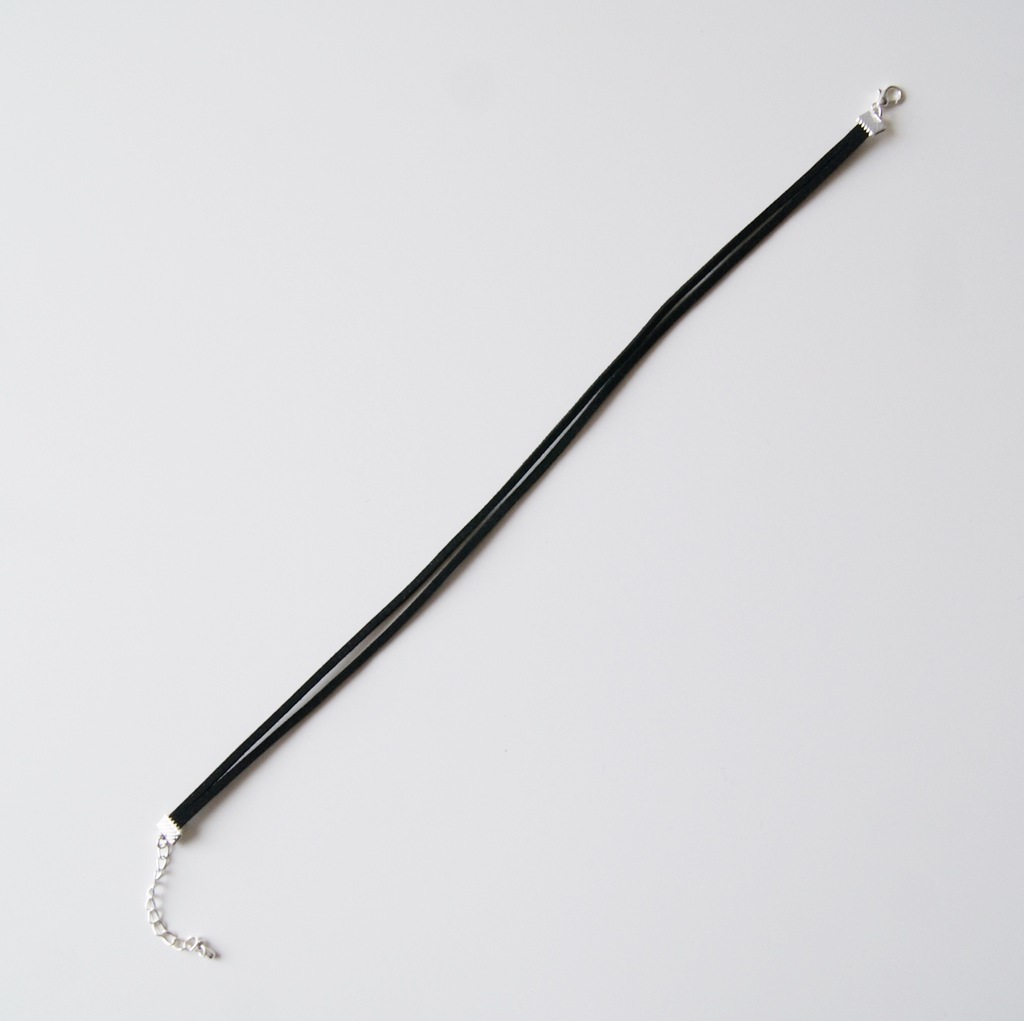 Podwójna obroża/choker wykonany z prawdziwej skóry - zamsz, w kolorze czarnym. Można ją nosić samodzielnie lub z dodatkową biżuterią.