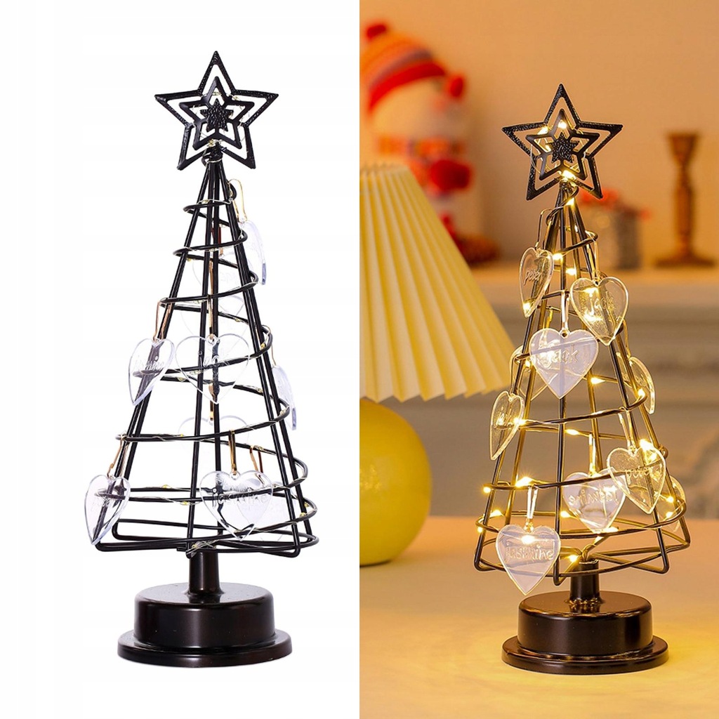 [Christmas Tree Night Light]: LED Xmas Tree Christmas Desktop Ornament, decorated with stars and love pendants, the warm light will add a festival atmosphere.