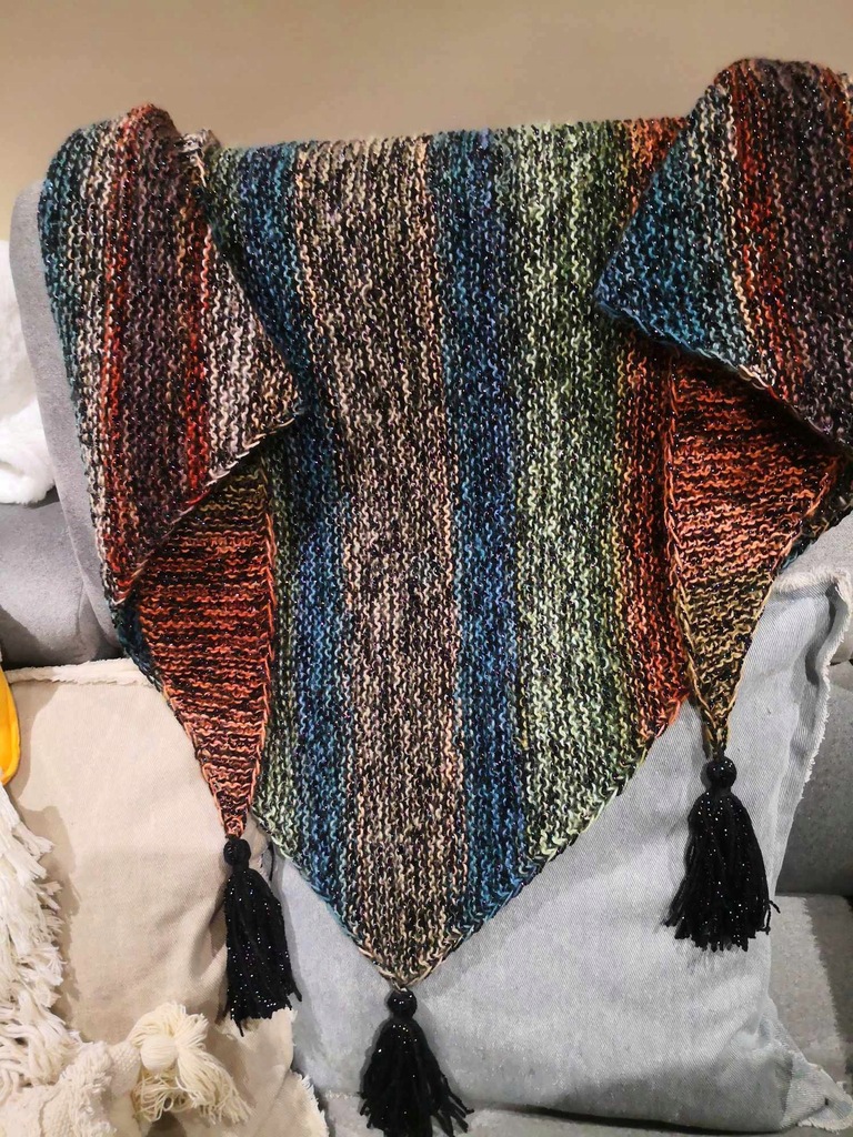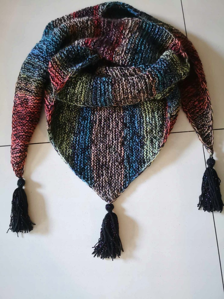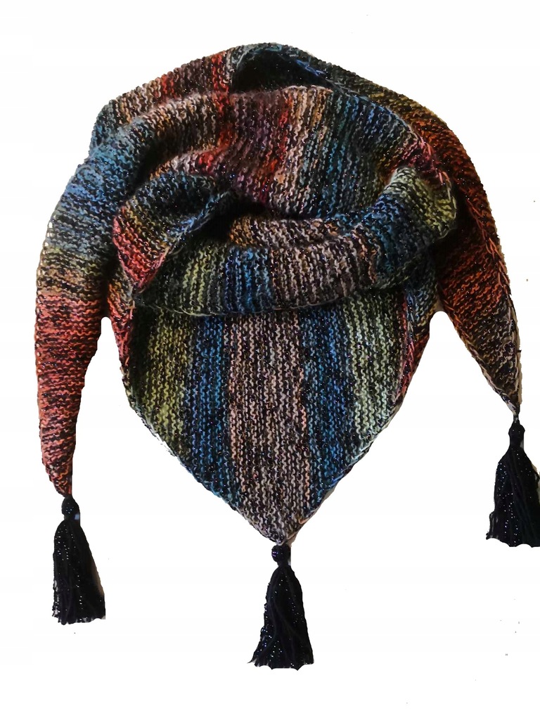 Bardzo duża nietuzinkowa , miła ,przyjemna , niegryząca w dotyku chusta wykonana na drutach ściegiem francuskim