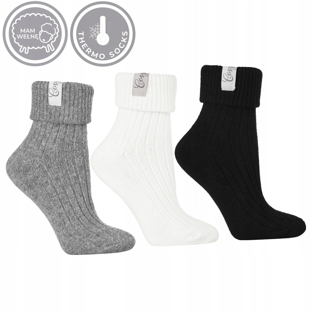 CIEPŁE SKARPETKI DAMSKIE Z WEŁNĄ NA JESIEŃ I ZIMĘ DZIANINA MORAJ 35-38 3pak