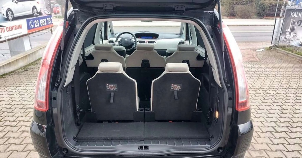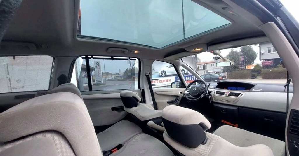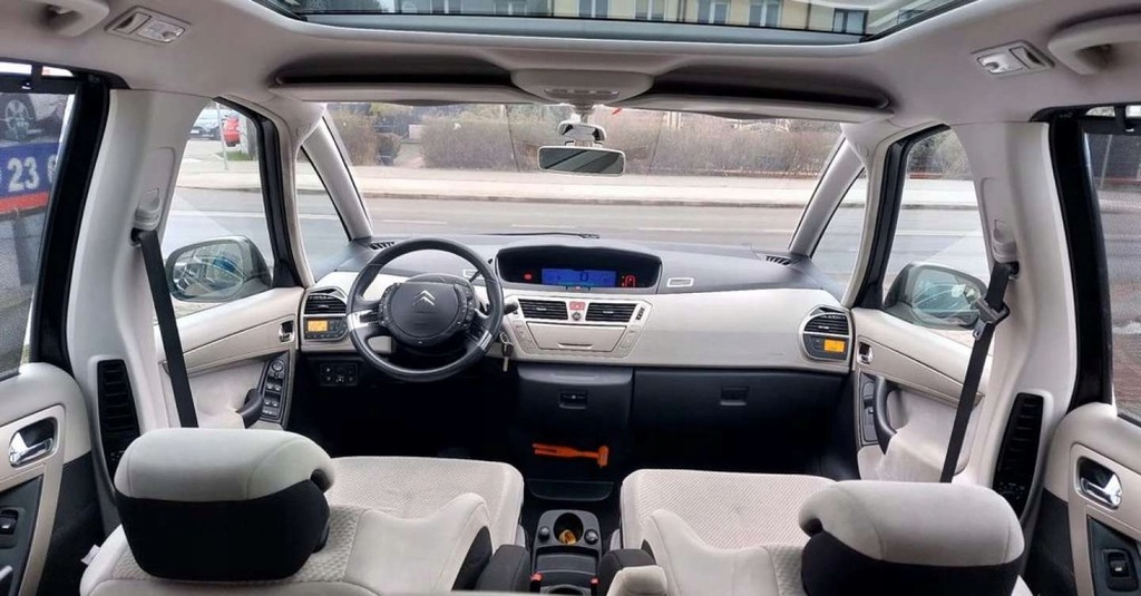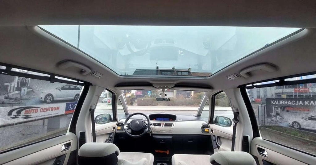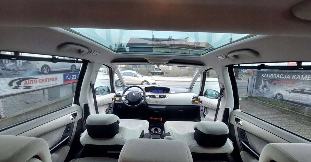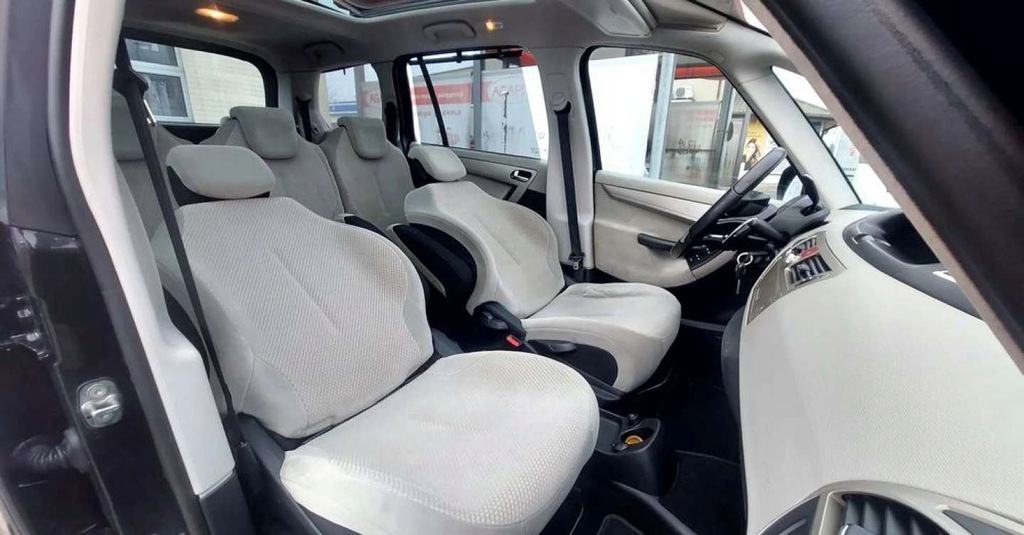 citroen w wersji w bogatej wersji wyposażenia Exclusiv: jasna tapicerka, dwustrefowa klimatyzacja, kolorowy wyświetlacz, 7 foteli, szklany dach, parktronic tył, hak, oryginale alufelgi.