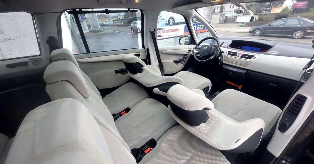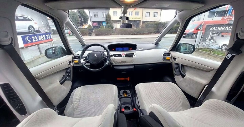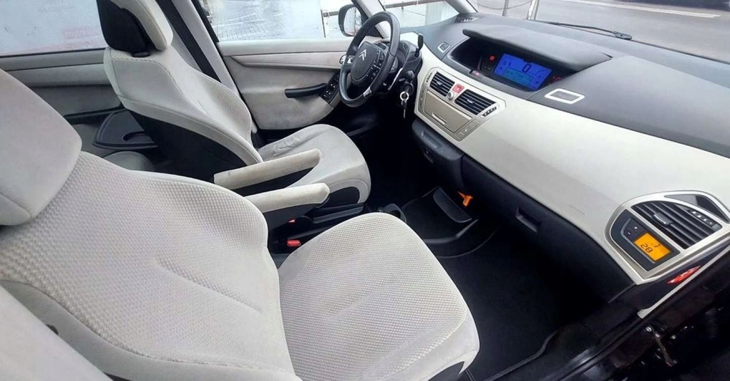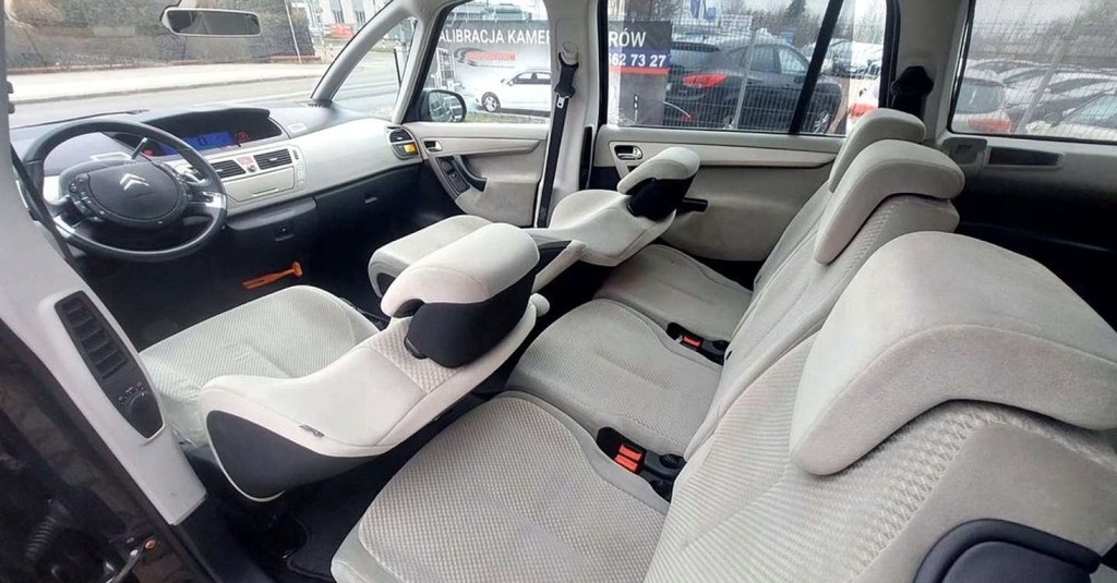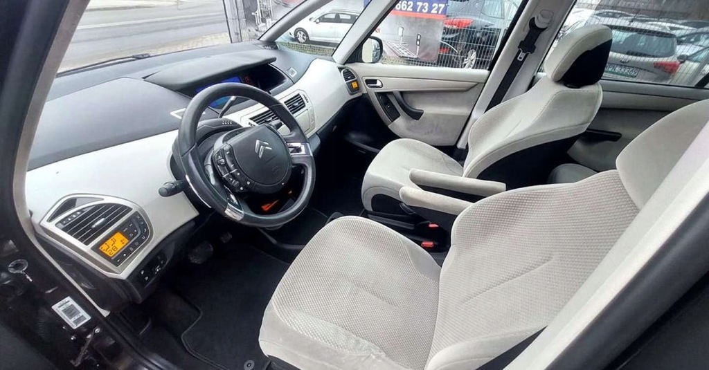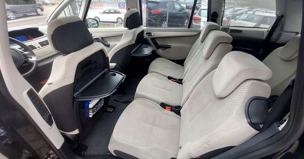 citroen w wersji w bogatej wersji wyposażenia Exclusiv: jasna tapicerka, dwustrefowa klimatyzacja, kolorowy wyświetlacz, 7 foteli, szklany dach, parktronic tył, hak, oryginale alufelgi.