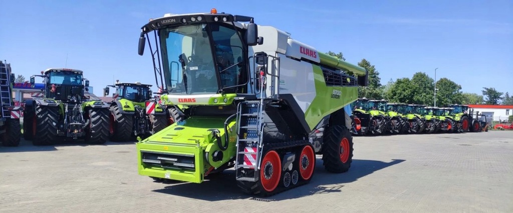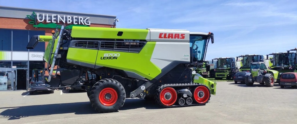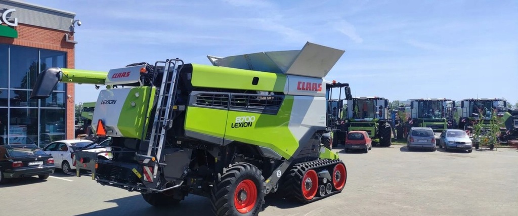 CLAAS LEXION 8700 TT Z PRZYRZĄDEM ŻNIWNYM VARIO 1080 ORAZ WÓZKIEM TRANSPORTOWYM.