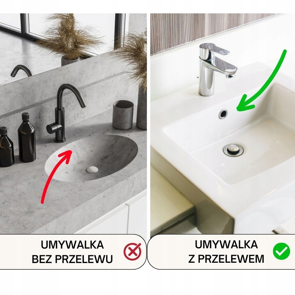 Sinks with overflow - have a hole on one of the internal walls, through which excess water escapes. Thanks to it, water does not escape above a certain level of the sink frame.