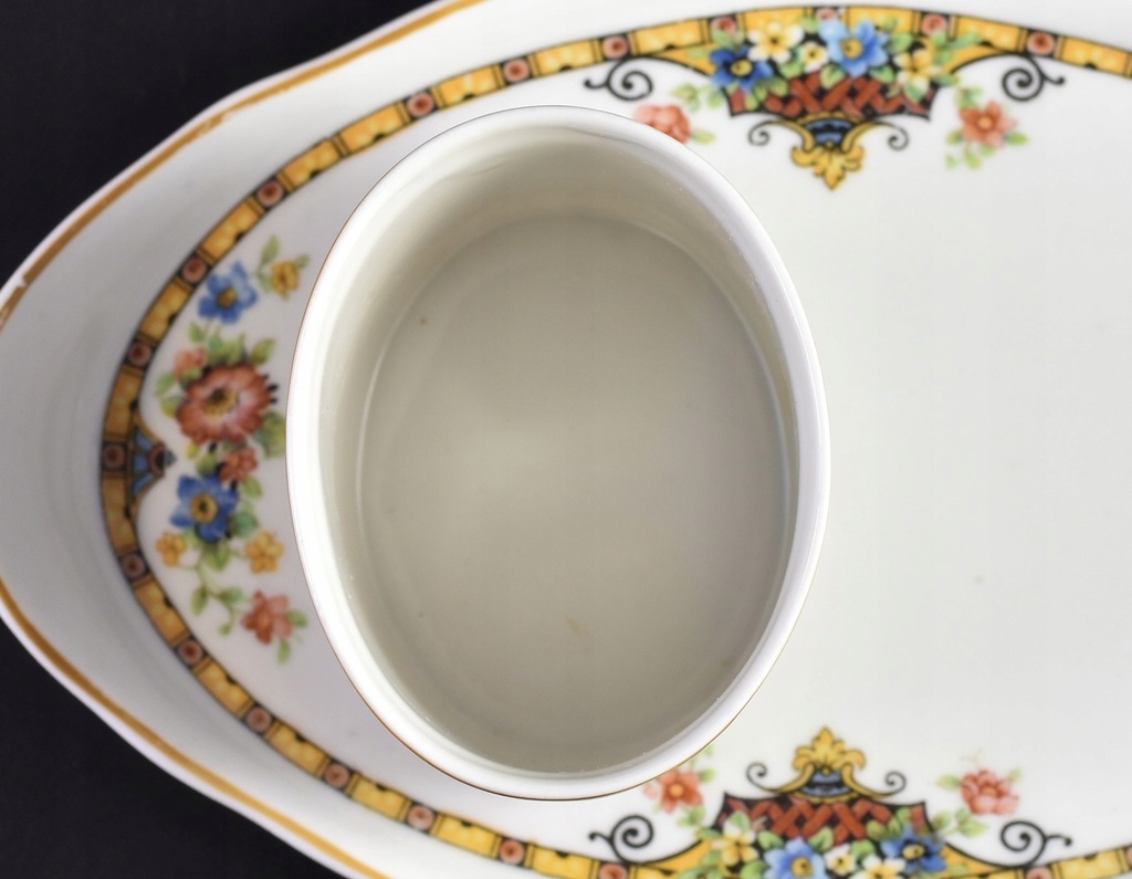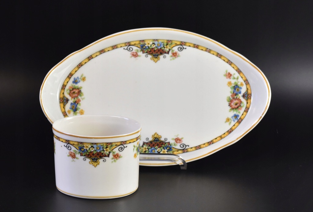 Stan: zestaw jest bardzo ładnie zachowany z małymi śladami użytkowania; na rancie tacki jeden mikro-odprsyk.
