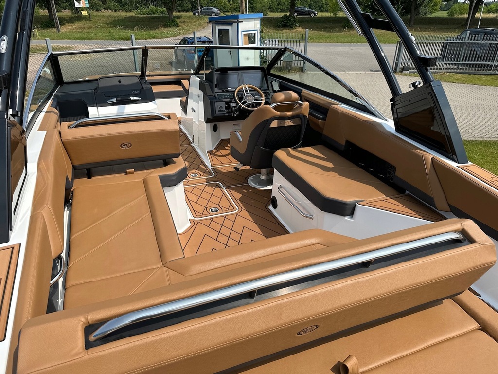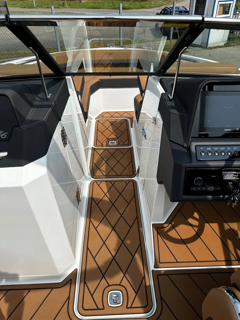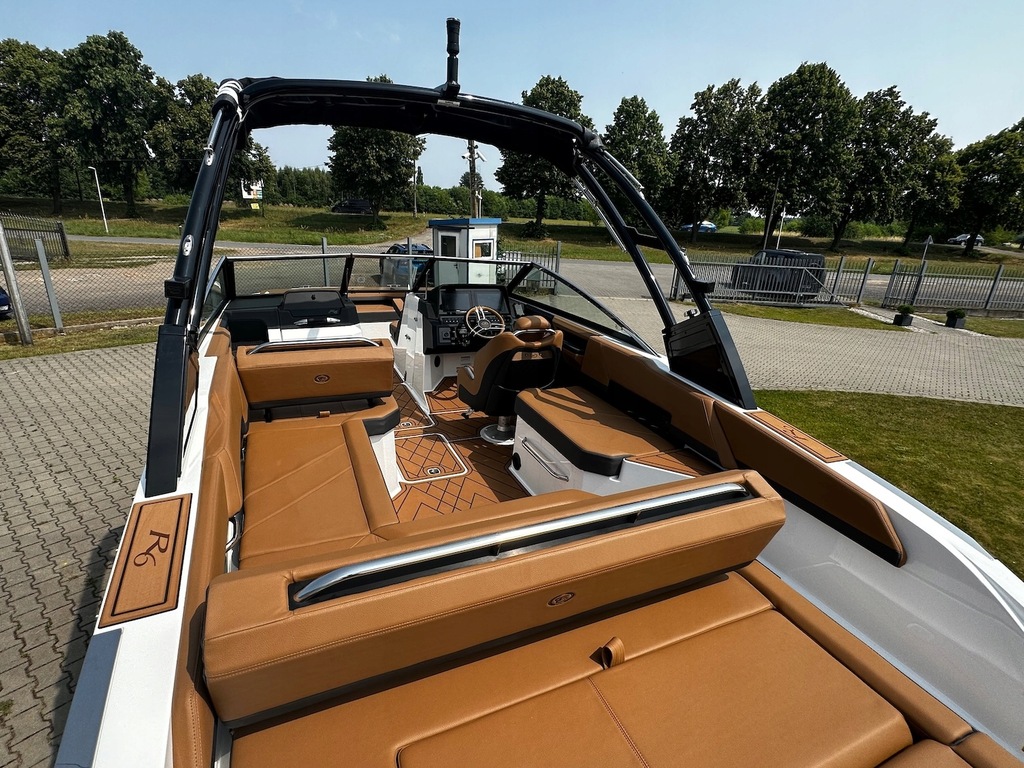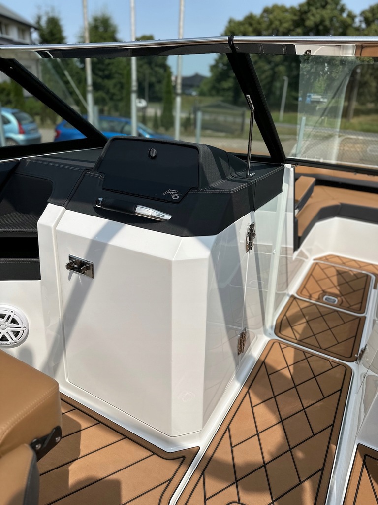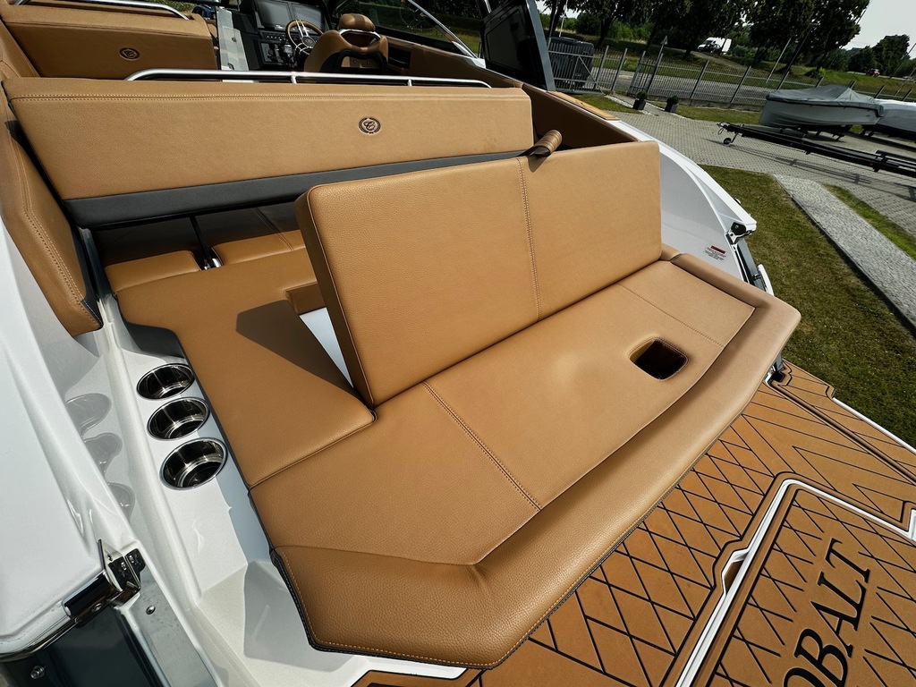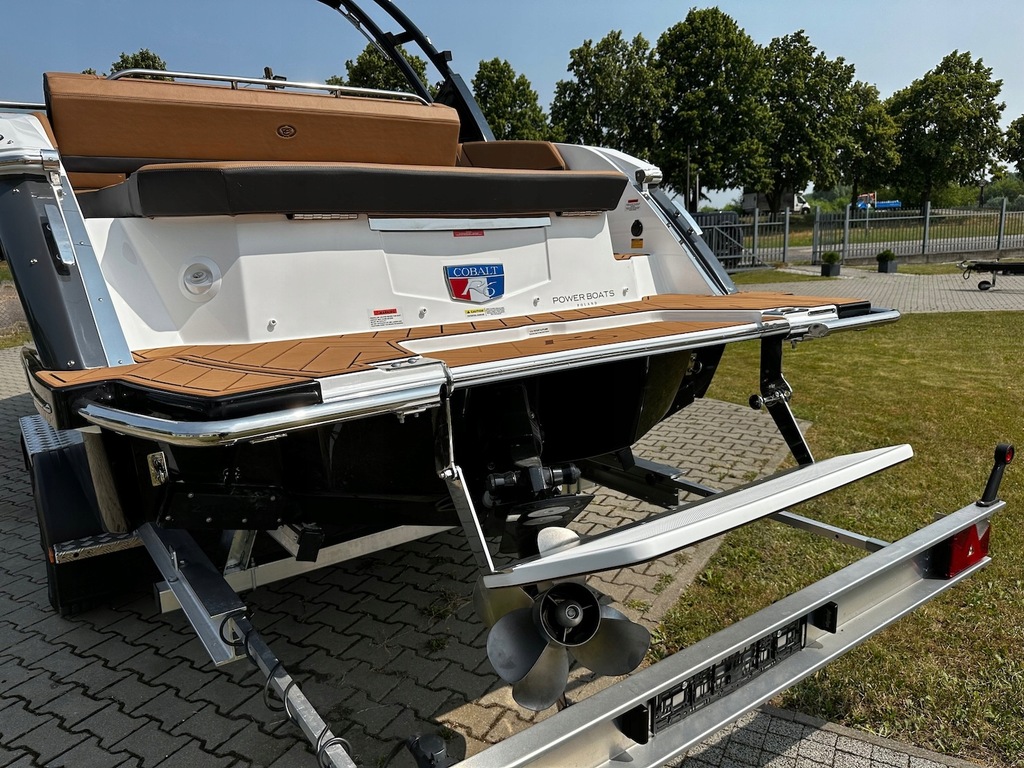 Najnowszy model z kultowej stoczni Cobalt Boats produkującej rewelacyjnie wykończone i technologicznie zaawansowane luksusowe łodzie sportowe. Następca najpopularniejszego modelu z serii R – R5. Przepiękny kształt tego bowridera rewelacyjnie współgra ze sportową kolorystyką. Bardzo obszerny kokpit z potężną leżanką na rufie i miejscem do opalania na dziobie śmiało pomieści nawet 12 osób! Osobna toaleta może również służyć za przebieralnię a wieża do wakeboard’u ze zintegrowanym bimini nadaje łodzi jeszcze bardziej drapieżny charakter. Kadłub z głębokim V i szkieletem kewlarowym zapewnia rewelacyjne właściwości nautyczne.