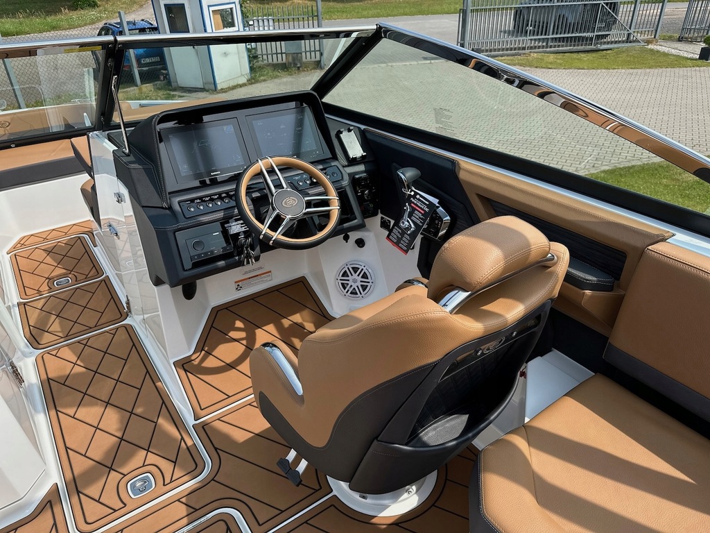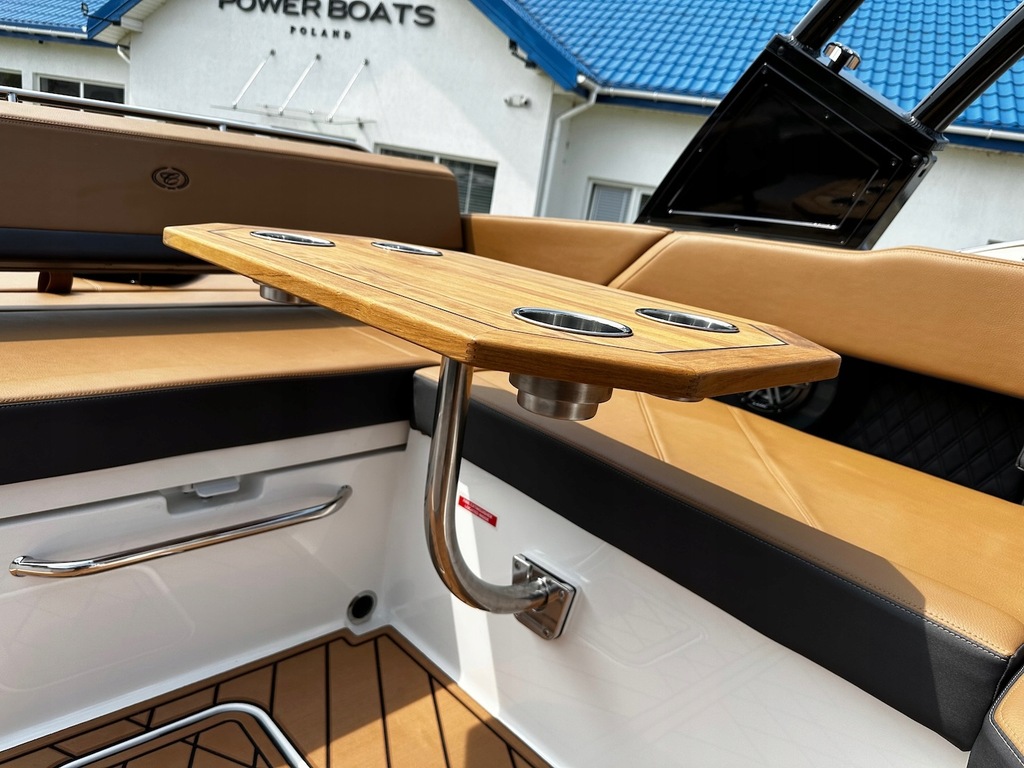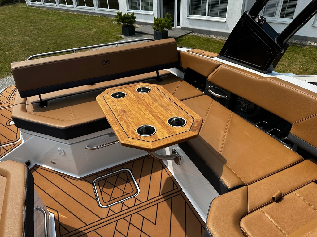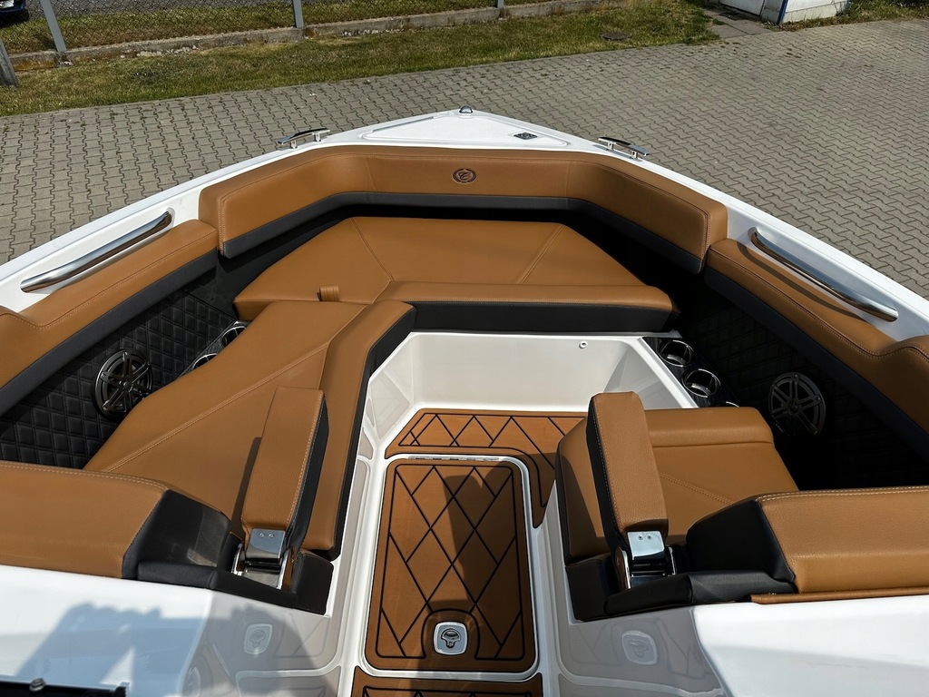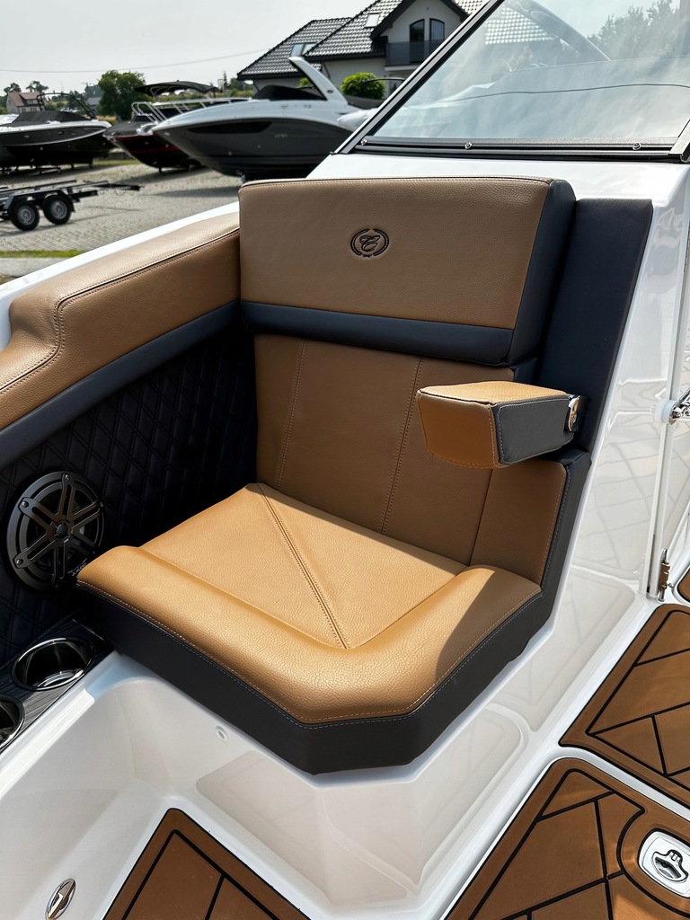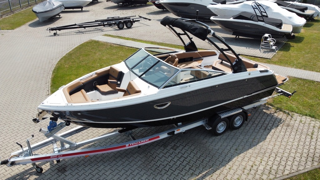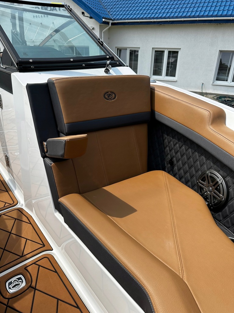 Najnowszy model z kultowej stoczni Cobalt Boats produkującej rewelacyjnie wykończone i technologicznie zaawansowane luksusowe łodzie sportowe. Następca najpopularniejszego modelu z serii R – R5. Przepiękny kształt tego bowridera rewelacyjnie współgra ze sportową kolorystyką. Bardzo obszerny kokpit z potężną leżanką na rufie i miejscem do opalania na dziobie śmiało pomieści nawet 12 osób! Osobna toaleta może również służyć za przebieralnię a wieża do wakeboard’u ze zintegrowanym bimini nadaje łodzi jeszcze bardziej drapieżny charakter. Kadłub z głębokim V i szkieletem kewlarowym zapewnia rewelacyjne właściwości nautyczne.