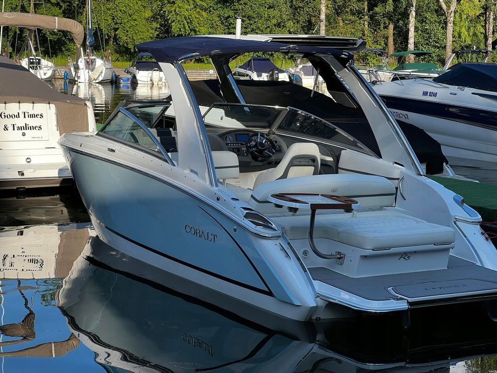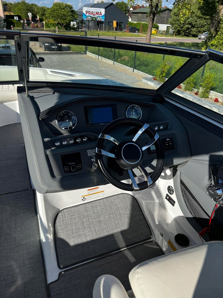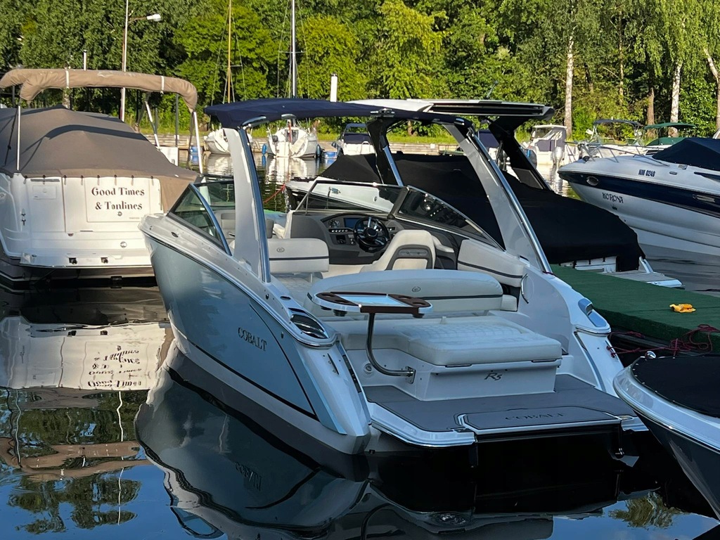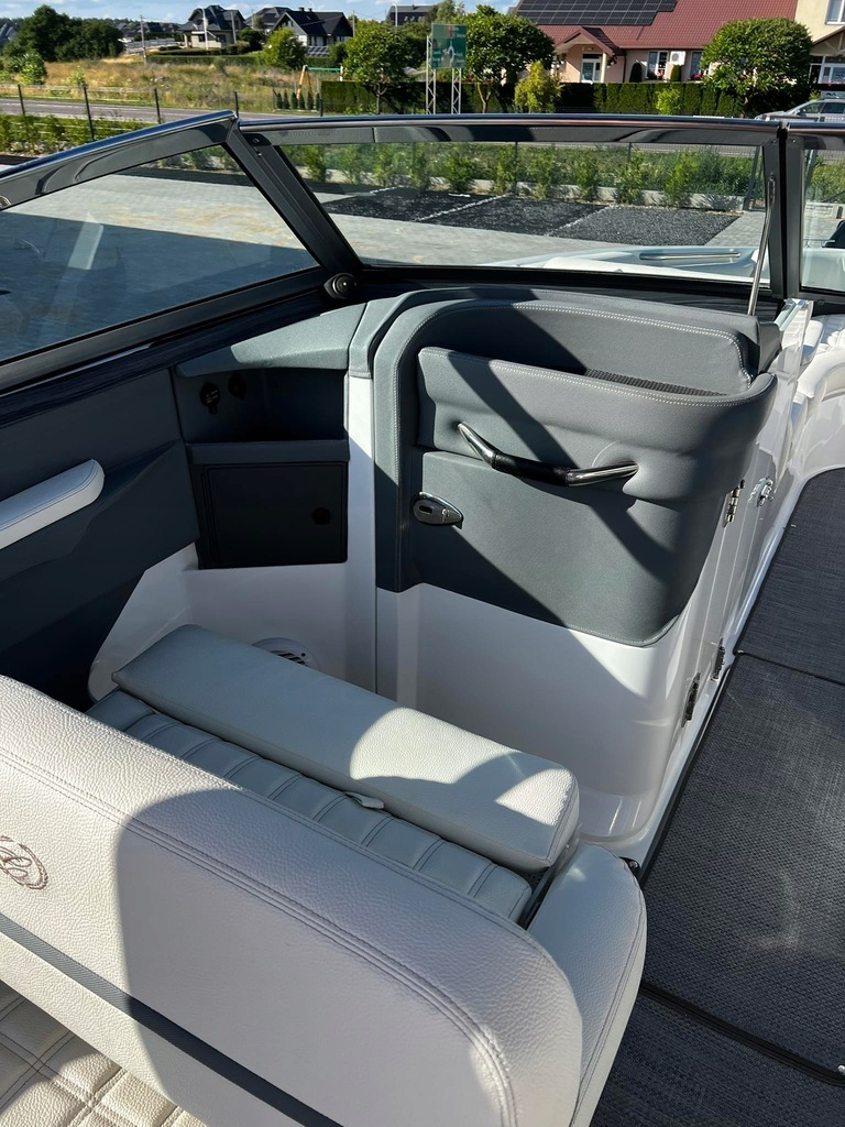 Model R6 z kultowej stoczni Cobalt Boats produkującej rewelacyjnie wykończone i technologicznie zaawansowane luksusowe łodzie sportowe. Przepiękny kształt tego bowridera rewelacyjnie współgra ze sportową kolorystyką. Bardzo obszerny kokpit z potężną leżanką na rufie i miejscem do opalania na dziobie. Osobna toaleta może również służyć za przebieralnię.