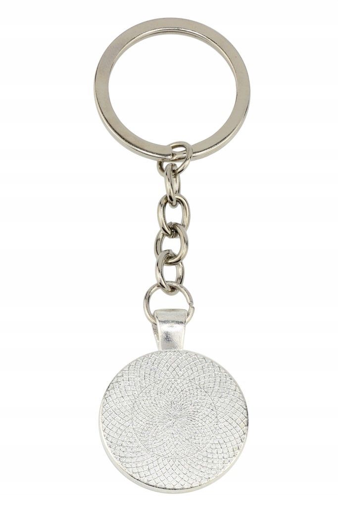 Wysokiej jakości, wyraźne zdjęcie umieszczone jest pod wypukłym szkłem. Oprawa wykonana jest z metalu w kolorze srebra, z pięknie zdobionym rewersem.
