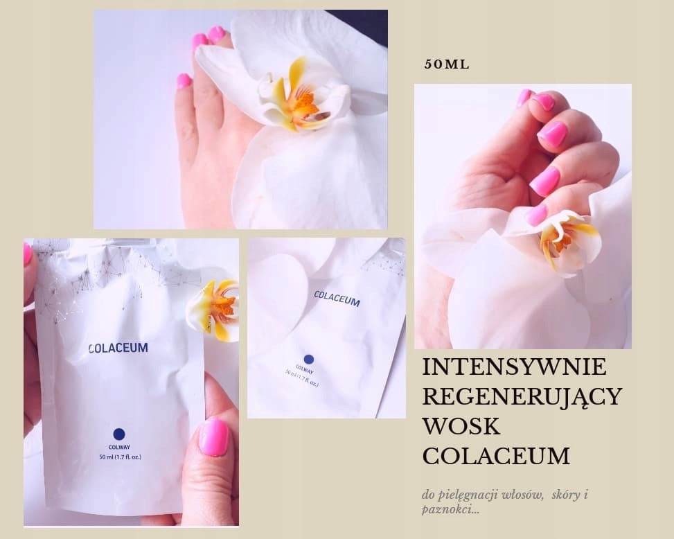 Co ważne, produkt jest w 100 % naturalny, ponieważ nie znajdziecie w nim żadnych emulgatorów, barwników, aromatów i konserwantów . Dobroczynne właściwości pielęgnacyjne i regenerujące Colaceum są po prostu nieocenione. Szczególnie polecamy je do pielęgnacji skóry wrażliwej, przesuszonej, zrogowaciałej lub pękającej, a także do pielęgnacji suchych i matowych włosów oraz przesuszonych paznokci i skórek.