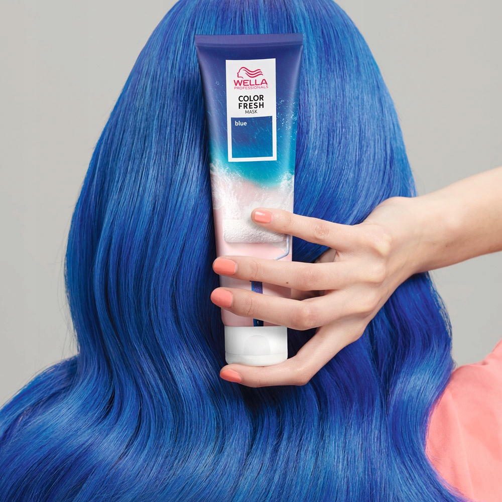 Maska Wella Color Fresh to doskonały sposób na odświeżenie odcienia uzyskanego dzięki koloryzacji w salonie. Pozwala zachować lub odświeżyć kolor włosów w zaciszu domowym. Odcień blue pomaga uzyskać radykalną zmianę włosów wstępnie rozjaśnionych lub zachować świeży kolor. Odpowiednia dla uzyskania niebieskiego odcienia.