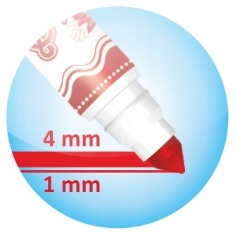 Dwie grubości pisania: stożkowa końcówka umożliwia rysowanie cienkich linii jeśli flamaster jest trzymany pionowo i szerokich jeśli zostanie pochylony.