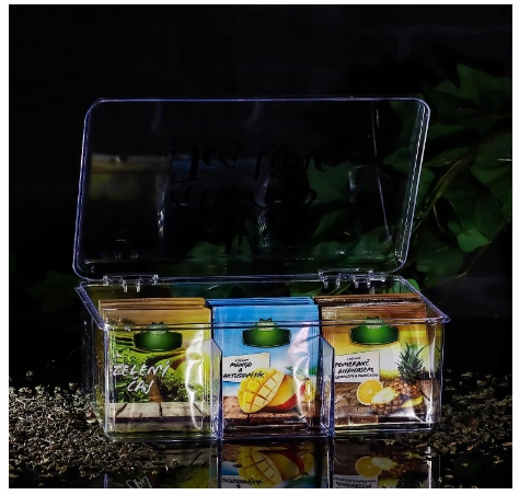- PRZEZROCZYSTE: dzięki przezroczystemu materiałowi zawartość pudelka na herbatę można obejrzeć w dowolnym momencie bez konieczności otwierania. Praktyczny niezbędnik w każdym domu!