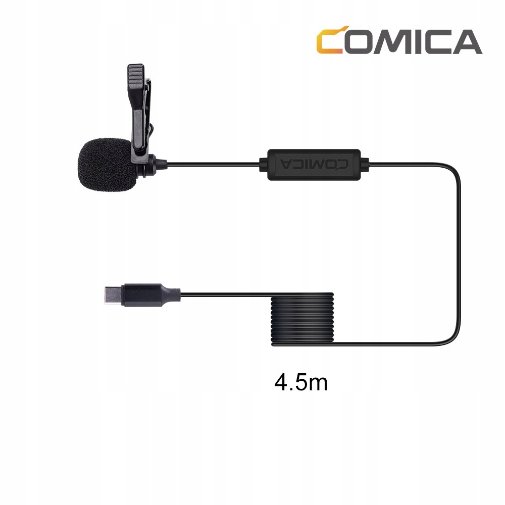 CVM-V01SP (UC) 4,5m to mikrofon krawatowy dedykowany jest smartfonom i łączy się z nimi za pomocą łącza USB-C.