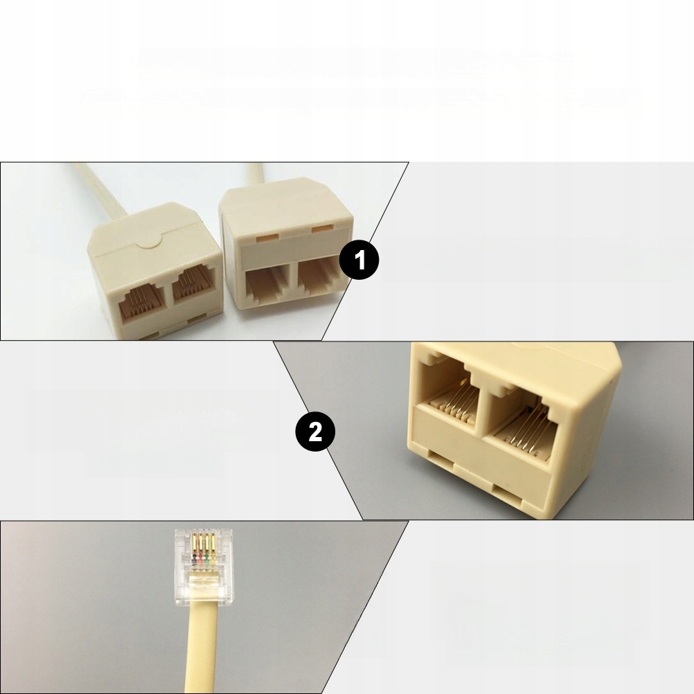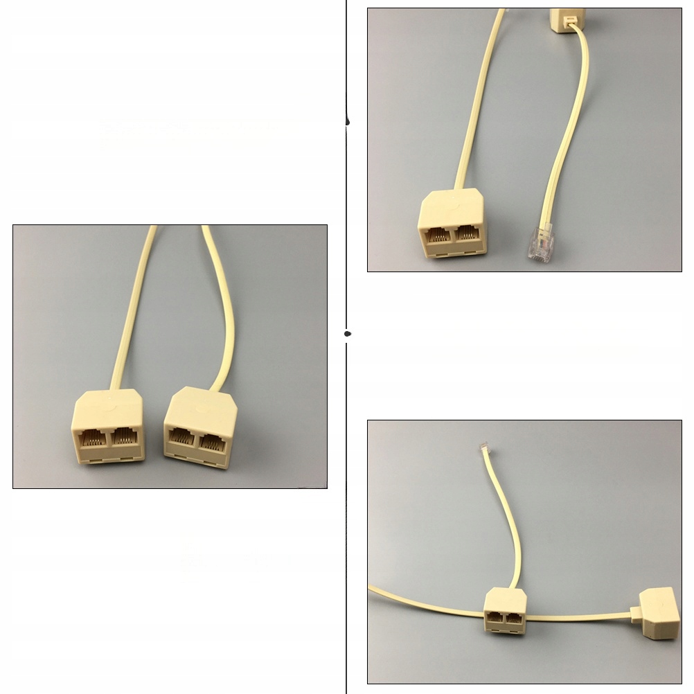 ✅1pc male RJ11 plug into 2pcs female RJ11 socket.