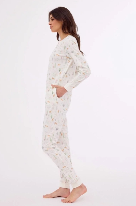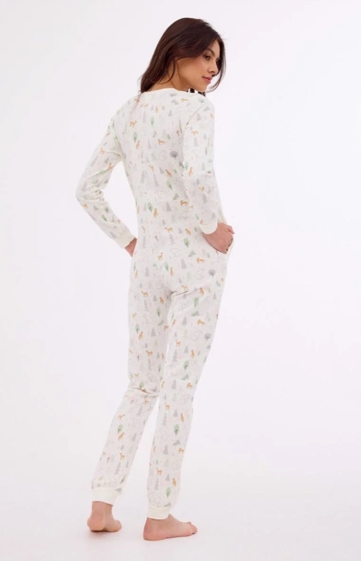 Kombinezon damski z długim rękawem i kieszeniami. Rękaw oraz nogawki wykończone ściągaczem. PIżama pakowana w pudełko.
