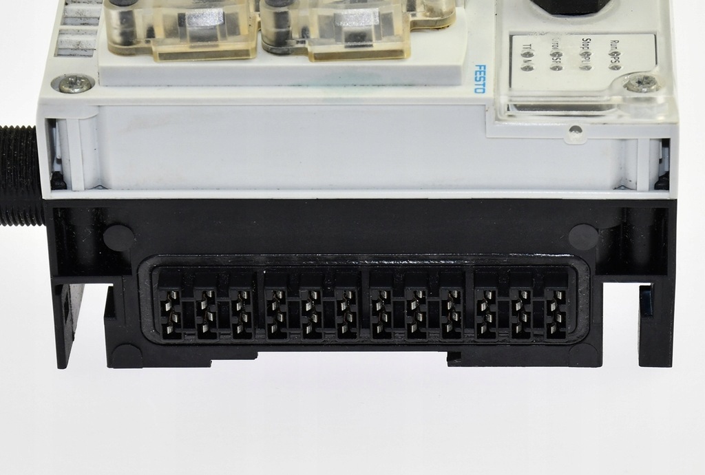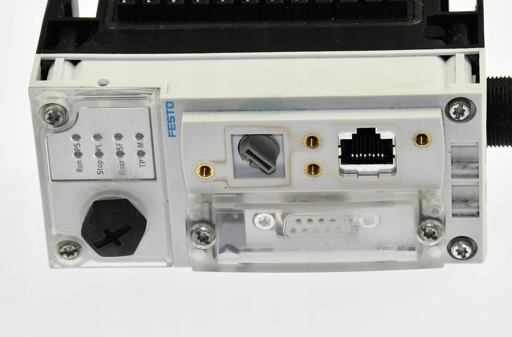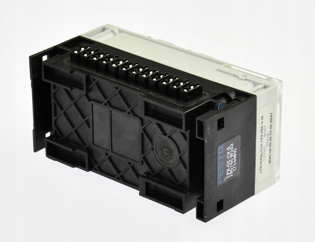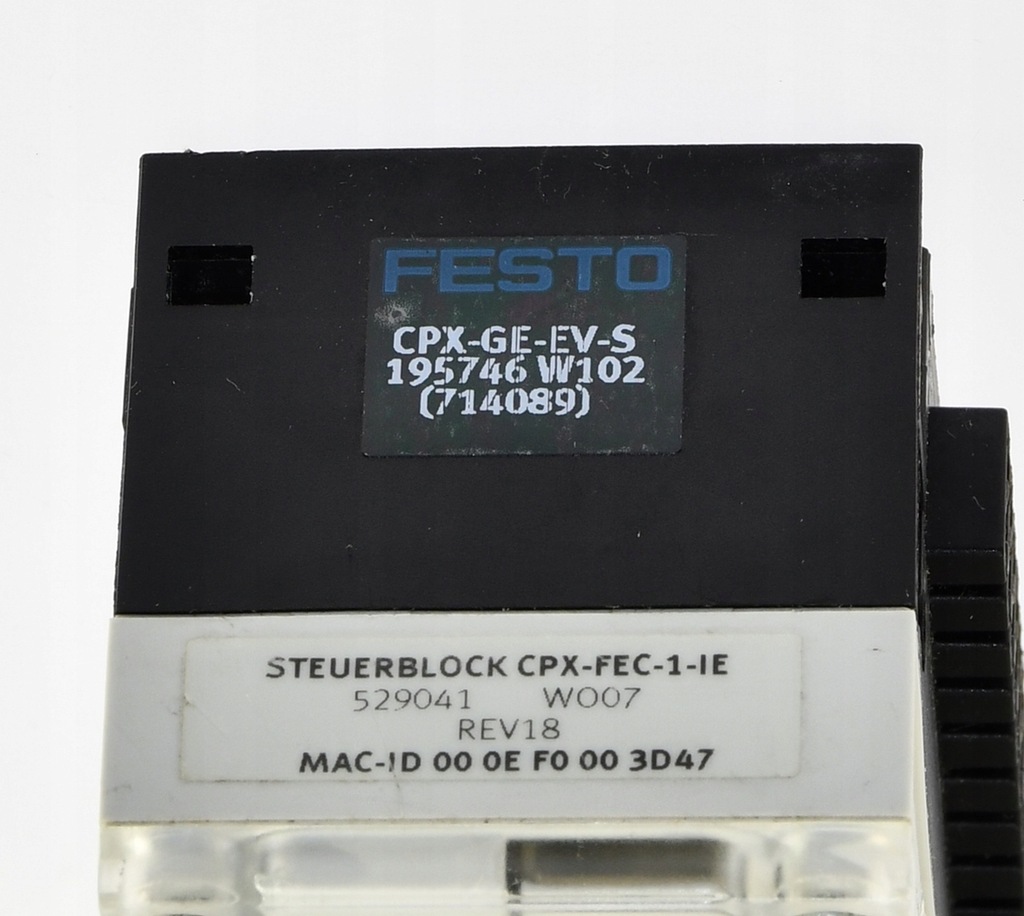 Używany, całkowicie sprawny element o symbolu: CPX-FEC-1-IE, produkt firmy FESTO, Nr katalogowy: 529041. Interfejs sterowania Ethernet. W zestawie z modułem podłączeniowym: CPX-GE-EV-S, Kod: 714089. Pochodzi z demontażu całkowicie sprawnych maszyn przemysłowych.