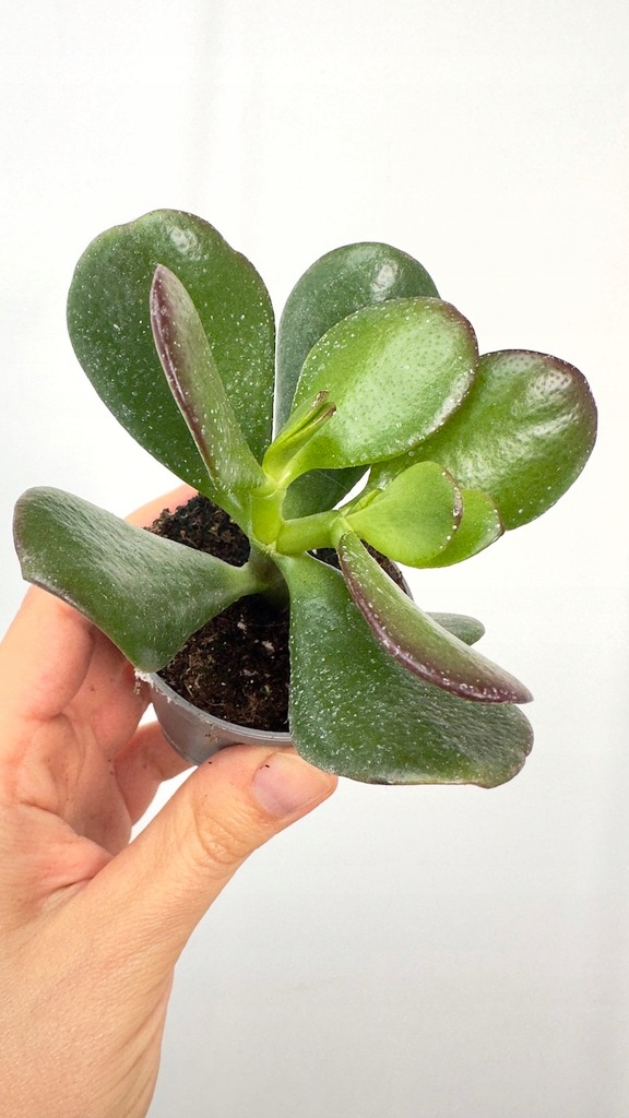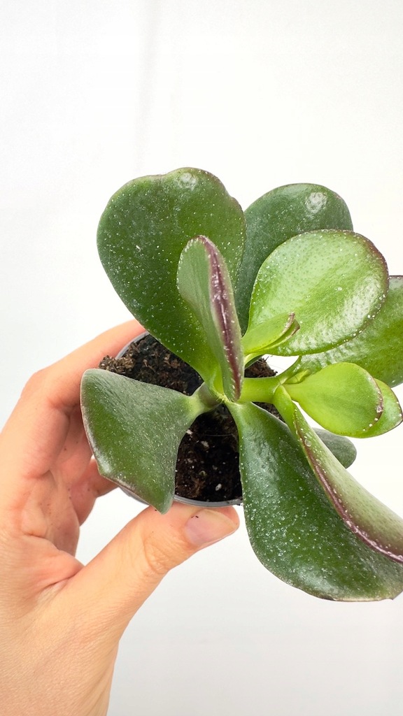 Liście Crassula argentea są grube, mięsiste i błyszczące, o owalnym kształcie. Mają intensywny zielony kolor, często z czerwonymi krawędziami, zwłaszcza gdy roślina jest wystawiona na intensywne światło. Powierzchnia liści jest gładka i lśniąca, co dodaje roślinie eleganckiego wyglądu.