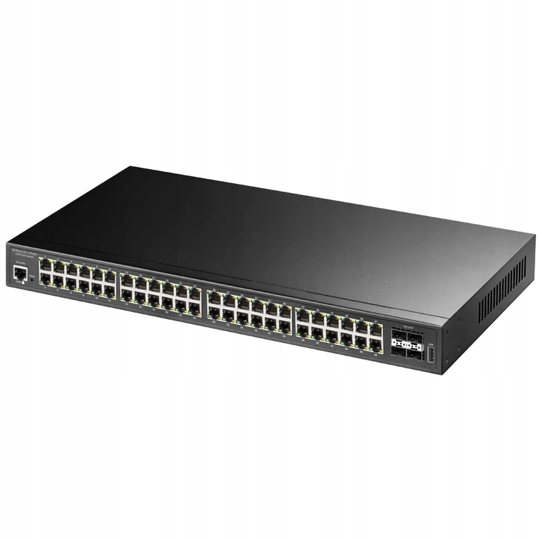Cudy GS2048PS4. Typ przełącznika: Zarządzany, Przełącznik wielowarstwowy: L2. Podstawowe przełączania Ethernet RJ-45 porty typ: Gigabit Ethernet (10/100/1000), Podstawowe przełączanie RJ-45 Liczba portów Ethernet: 48, Liczba portów USB 2.0: 1, Port konsoli: RJ-45. Pełny dupleks. Wielkość tabeli adresów: 32000 wejścia, Przepustowość rutowania/przełączania: 176 Gbit/s. Standardy komunikacyjne: IEEE 802.3, IEEE 802.3ab, IEEE 802.3af, IEEE 802.3at, IEEE 802.3bt, IEEE 802.3u, IEEE 802.3x, IEEE.... Obsługa PoE