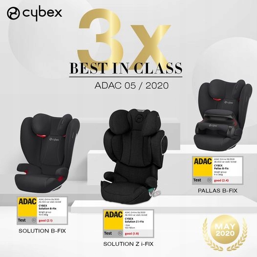 Fotelik samochodowy Solution B-Fix został najlepiej oceniony w majowych testach ADAC 2020, dostając ogólną ocenę 2.1*. Stiftung Warentest oraz ADAC—zarówno jak inne niezależne organizacje testujące—oceniały fotelik pod względem: