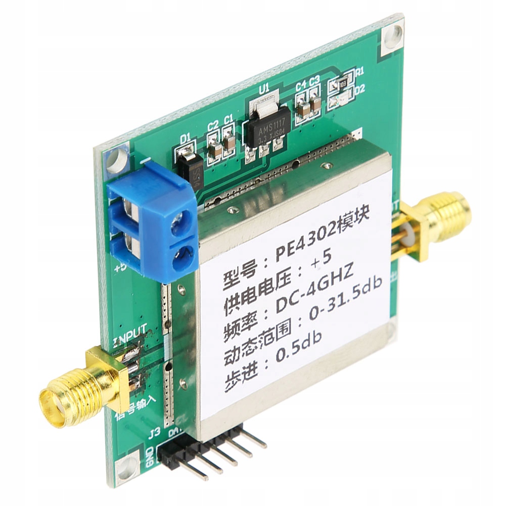 PE4302 jest 6-bitowym cyfrowym tłumikiem krokowym RF o wysokiej liniowości z "DSA" w zakresie od 0,5 dB do 31,5 dB. Zakres częstotliwości jest tłumiony od DC-4000MHz. Ten 50-omowy RF DSA zapewnia równoległe i szeregowe interfejsy sterujące CMOS, które działają na pojedynczym zasilaniu 3 V i zachowują wysoką dokładność tłumienia częstotliwości i temperatury. Posiada również unikalny interfejs sterowania, który pozwala użytkownikowi wybrać początkowy stan tłumienia po włączeniu zasilania. Posiada ekranowaną obudowę oraz diodę zabezpieczającą przed cofaniem.